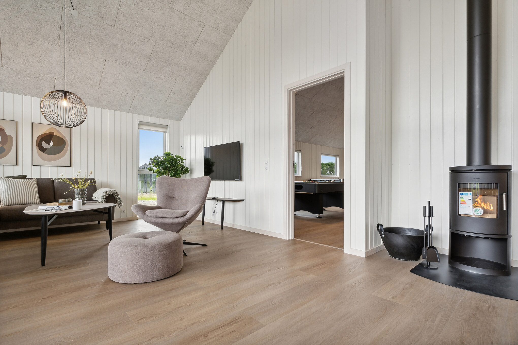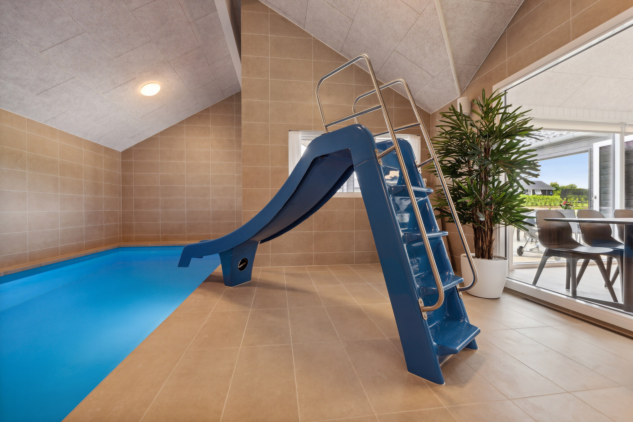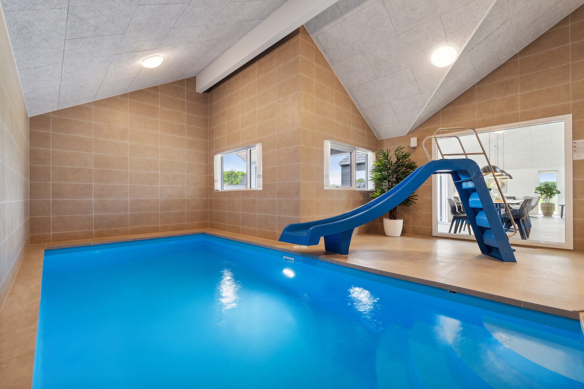 Dette moderne poolhus ved Skåstrup Strand ligger kun 600 meter fra havet og har plads til 18 personer. Huset kombinerer wellness, aktiviteter og fællesrum og er derfor oplagt til ferier med familie eller venner året rundt. Her findes 7 soveværelser, 4 hemsepladser, 3 badeværelser og et stort opholdsrum med XL-køkken, brændeovn og langbord til fællesspisning. Til underholdning er der aktivitetsrum med bordtennis, billard, dart, bordfodbold og en lille bar, mens poolafdelingen byder på pool med rutsjebane, spa og sauna. Udenfor kan man nyde en stor terrasse med lounge, grill og overdækket område, såvel som trampolin og legeplads til børnene.Beliggenheden i et fredeligt sommerhusområde nær Bogense giver adgang til strand, natur, fiskeri, små butikker og isboder. Alt i alt et ideelt feriehus, hvor både ro og aktiviteter går hånd i hånd, og hvor minderne skabes i hyggelige rammer.