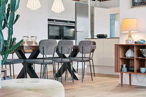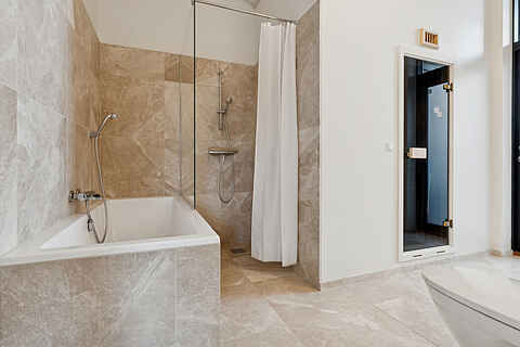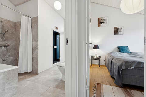 Indretningen er moderne og gennemtænkt med fokus på lys, funktionalitet og atmosfære. Der er mulighed for ekstra seng og værelse til en tredje person, og morgenmad kan arrangeres efter aftale. Her er rammerne sat for et behageligt ophold med plads til både samvær og privatliv.