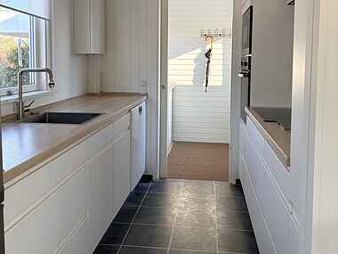 De store vinduespartier inviterer lyset indenfor og giver jer følelsen af, at naturen rykker helt ind i stuen. Huset er indrettet personligt og hyggeligt med masser af små detaljer, der skaber den ægte sommerhusstemning. Nyd morgenkaffen med kig til de grønne omgivelser, eller læn jer tilbage i sofaen efter en dag på farten, mens brændeovnen knitrer i baggrunden.