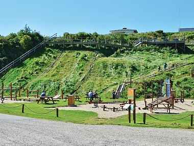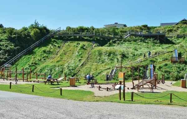 Tæt på stranden findes både legeplads, minimarked og restaurant, hvilket gør det nemt at holde ferie uden lange køreture. Her er gode faciliteter for både børn og voksne.