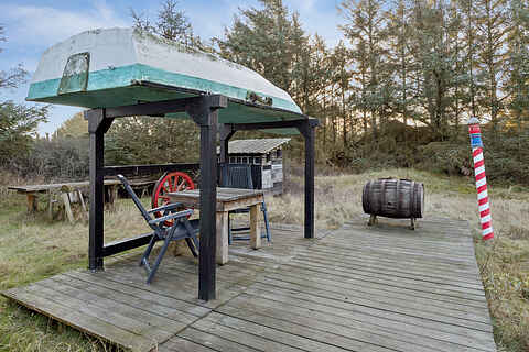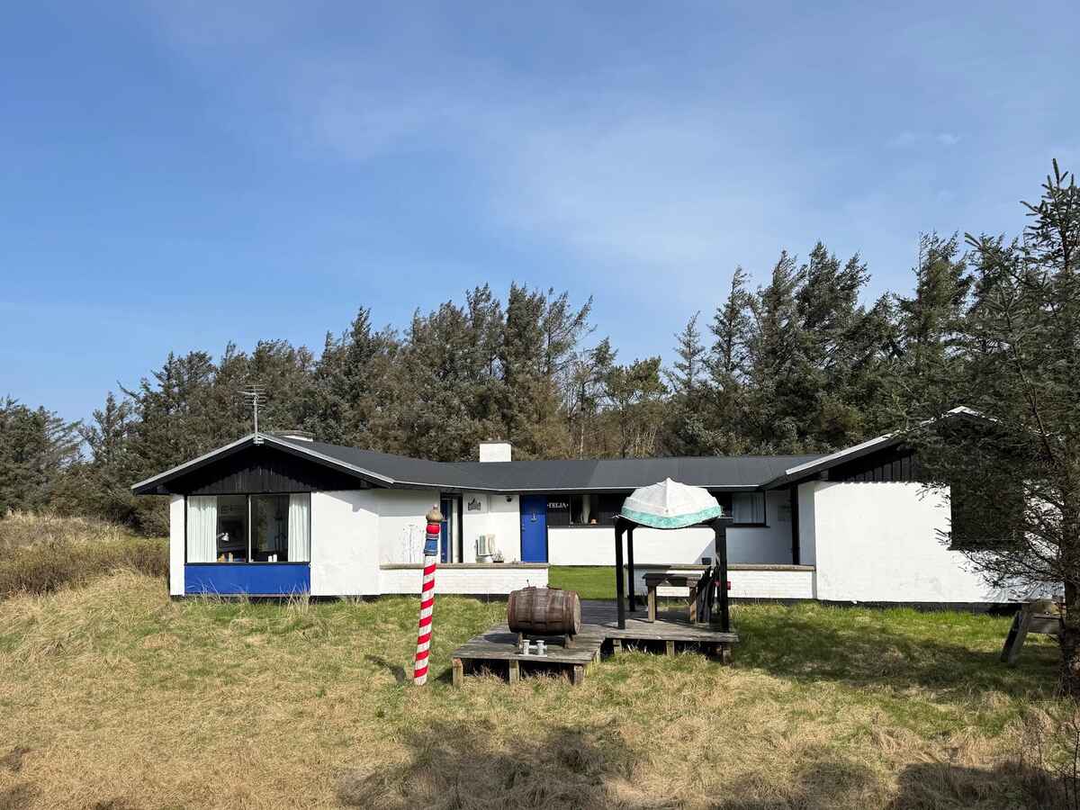 Hyggeligt familie sommerhus med personlig charme beliggende på stor ugeneret naturgrund i et skønt område tæt på vesterhavet og dejlig badestrand. Her kan I høre suset fra vesterhavet, vinden i toppen af granerne og kan ikke undgå at slappe af.