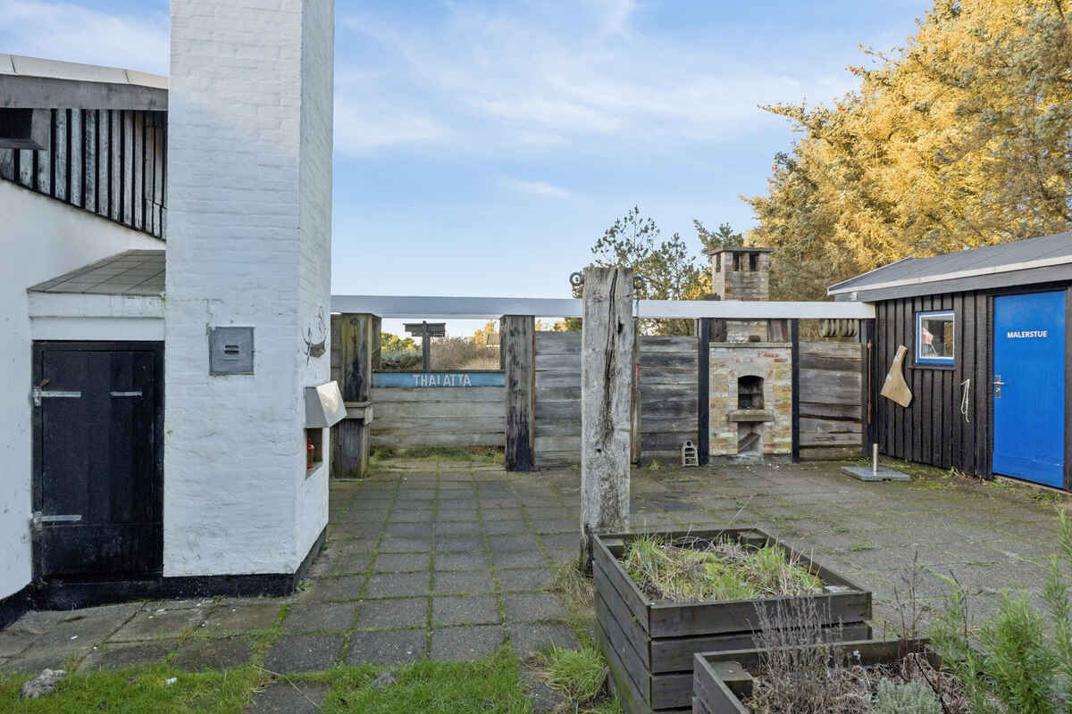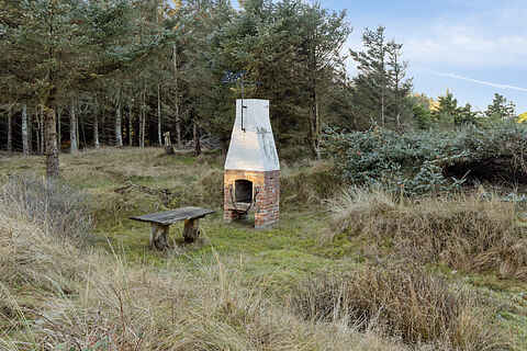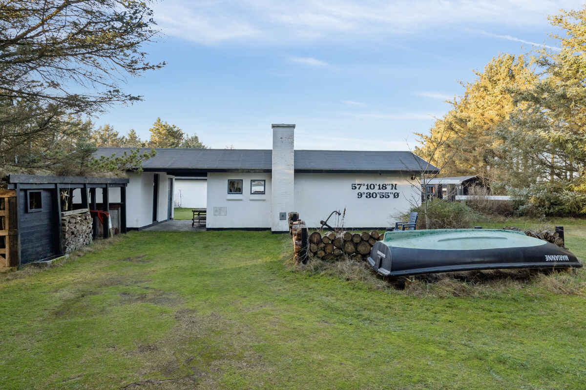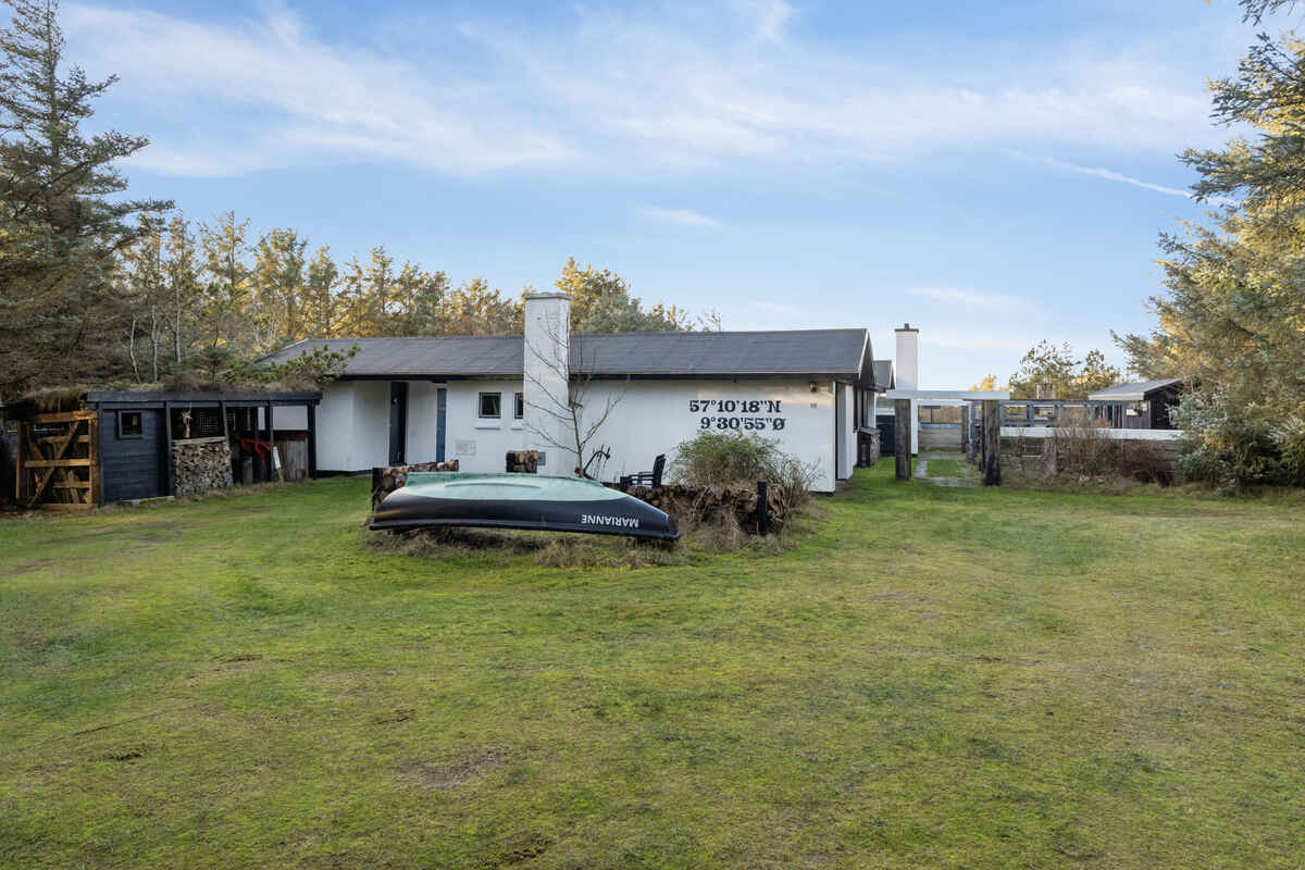 Sommerhuset er beliggende på en 4422 m² stor naturgrund med 375 m til havet. Der er 27 m² terrasse med afskærmning mod vestenvinden og plads til at spise ude i sommerhalvåret. Grill til rådighed.