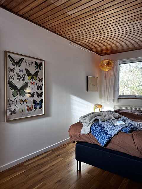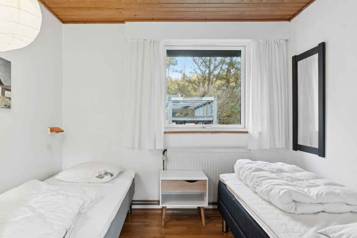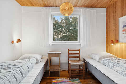 Sommerhuset har 4 soveværelser med sengepladser til 8 personer og en babyseng til 1 barn. Sovepladserne fordeler sig på: 2 sovepladser i dobbeltseng. 6 sovepladser i enkeltsenge. 2 af disse sovepladser befinder sig i et anneks.