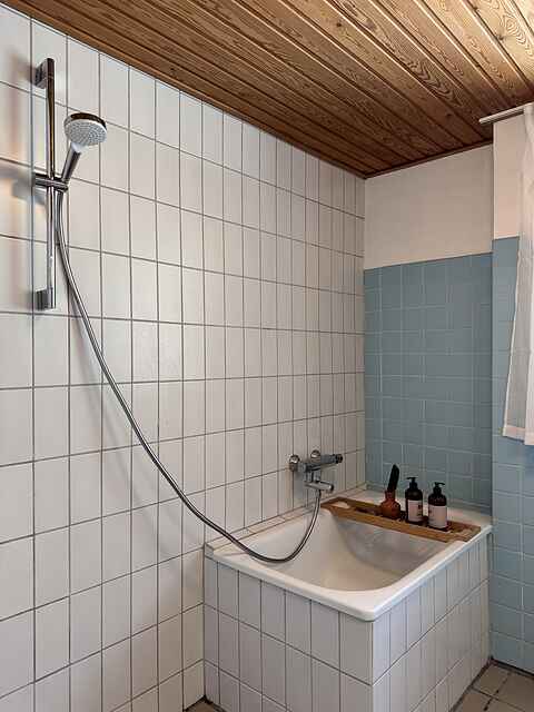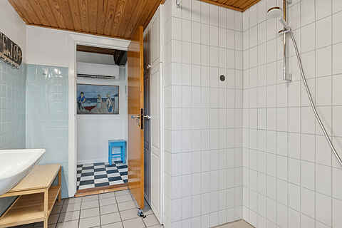 Der er 1 badeværelse med bruseniche, toilet samt siddebadskar.