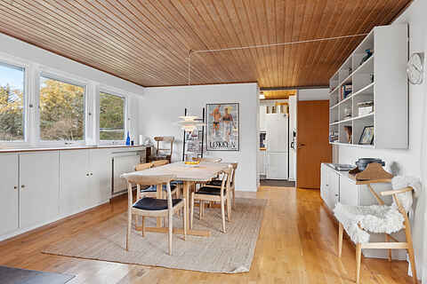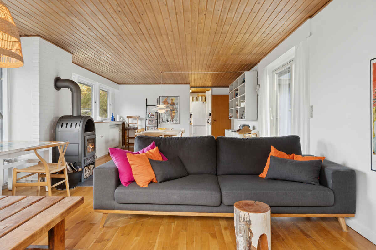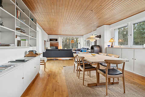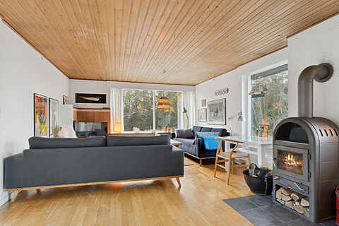 Huset har en åben planløsning med tæt adgang til køkkenet og nem adgang til udearealerne. Her får den store familie, eller to familier sammen, en dejlig ferie med ro og hygge.
