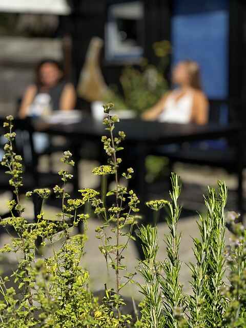 Der er sandkasse nær terrassen og rig mulighed for at gå på opdagelse i naturen for både store og små.