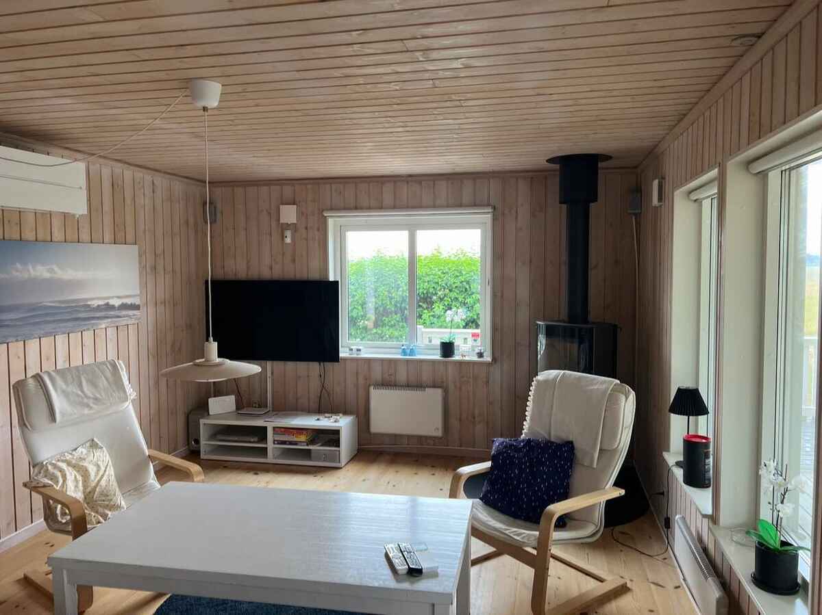 Huset er veldisponeret, har varmepumpe, brændeovn og gratis internet.