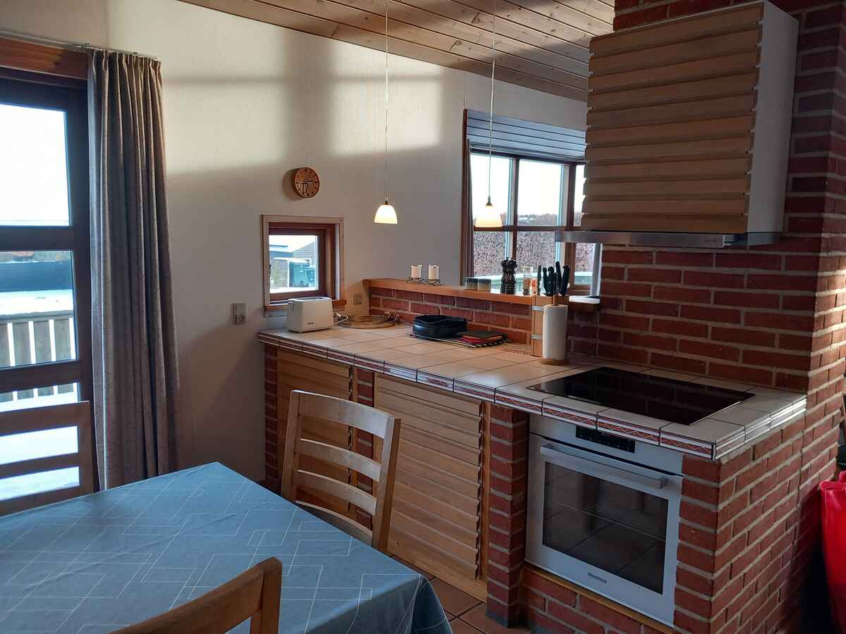 Køkkenet er nyt og åbent mod TV- og opholdsstuen, så samvær naturligt er i centrum. Brændeovnen giver varme og hygge på køligere dage, mens gulvvarme i både køkken og badeværelse sikrer komfort året rundt. En stor hems er ideel til større børn.