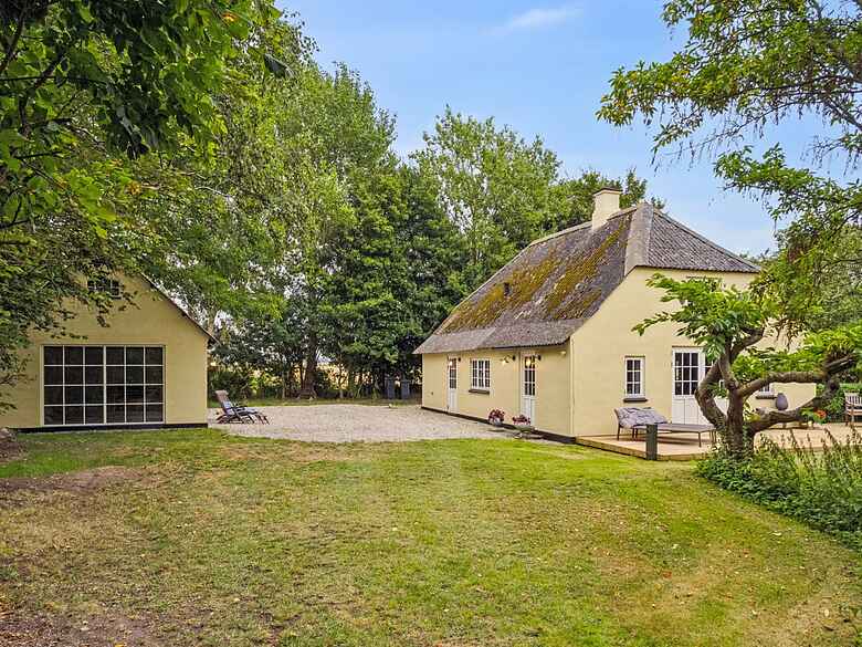 I det tilhørende anneks er der plads til op til fem overnattende gæster. Annekset er opdelt med en New Yorker-væg og indeholder et soveværelse med dobbeltseng samt en lille stue med sovesofa og lænestol, der kan slås ud til en ekstra seng. Det giver i alt op til syv sovepladser på grunden. TV-stuen er ideel til afslapning, filmaften eller en stille stund med en bog og udsigt til haven gennem det store vindue.