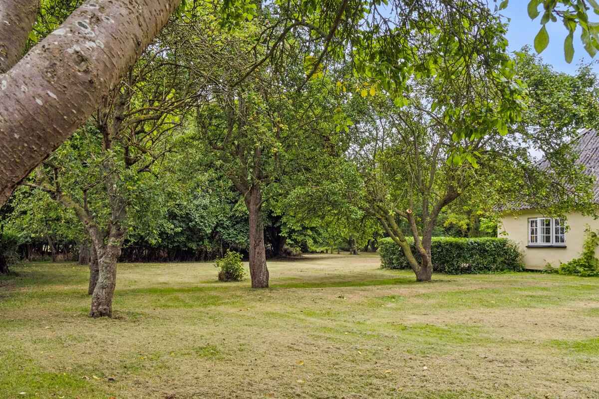 Grunden er helt uforstyrret, omkranset af træer og med god afstand til naboer – her får du ægte fred, ro og privatliv. Naturen kan nydes lige uden for døren, men både skov og strand ligger også tæt på.