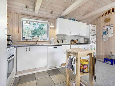 Sommerhuset er helårsisoleret og kan varmes op med en varmepumpe samt en hyggelig brændeovn, hvilket gør det ideelt til ferieoplevelser året rundt.