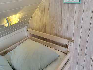 Huset har 2 værelser, hver med 2 senge, derudover er der én juniorseng i det ene værelse og en weekend seng til 0-3 år. Mellemgang med 1 seng.