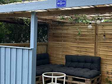 Solen kan nydes fra en af husets to overdækkede terrasser. Begge er møbleret og har udsigt til den hyggelige have. Huset ligger på en lukket grund og har plads til tre biler i indkørslen.