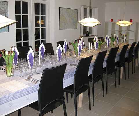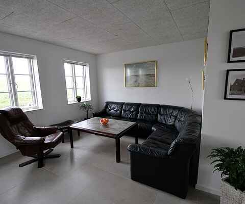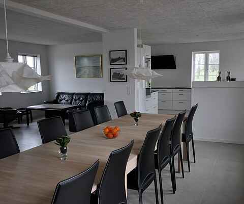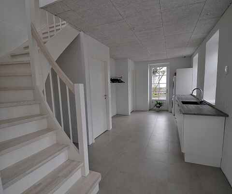 Boligen indeholder desuden et moderne og velindrettet køkken og opholdsstue i direkte forlængelse af køkkenet med sofagruppe og spiseplads. Derudover er der et bryggers/grovkøkken med vaskemaskine, tørretumbler, fryser og ekstra køleskab samt bord med vaskeplads. Boligen er handicapvenlig så kørestolsbrugere kan bevæge sig frit rundt i stueplan.