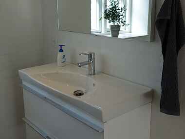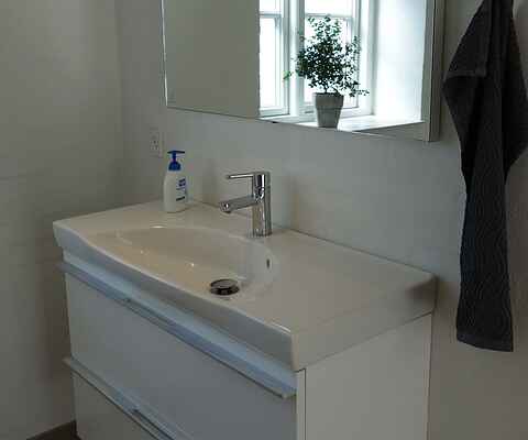 Der er gulvvarme overalt i boligen med asketræsparket på 1. salen og klinker i stueetagen. Boligen opvarmes med jordvarme.