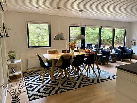 Fra huset er der blot 300 meter til vandet, og udsigten mod både skov og natur giver en særlig stemning året rundt. Afstanden gør det nemt at tage spontane ture til stranden, hvad enten det er til en morgendukkert, en rolig gåtur eller en aften med solnedgang.
