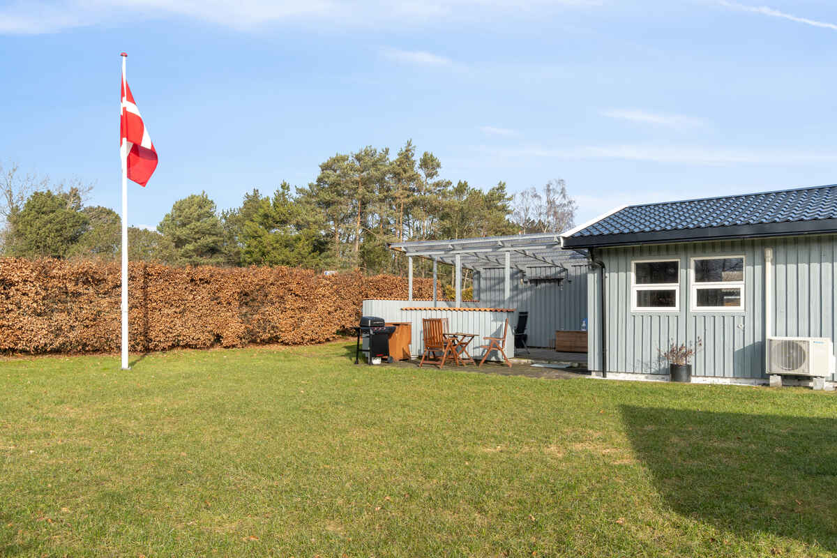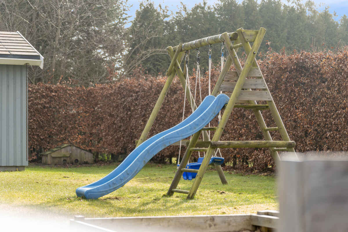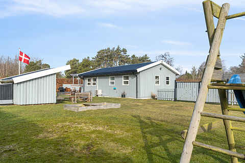 Kun 50 meter fra huset ligger en større offentlig legeplads med boldbane, hvilket gør området særligt attraktivt for børnefamilier. Samtidig er der kort afstand til vandet – cirka 1 km til stranden – som er kendt for sit rolige og børnevenlige badevand.