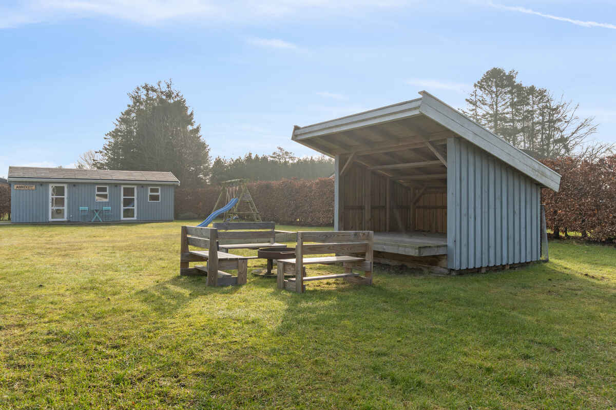 Boligen ligger på en lukket grund, hvor haven er indhegnet og velegnet til både børn og voksne. Her finder I både shelter og bålsted, som giver mulighed for udeliv, aftensmad over åben ild og hyggelige stunder under åben himmel.
