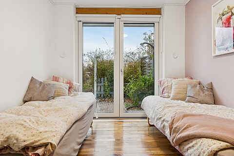 Lyst og venligt indrettet med store vinduer og masser af dagslys