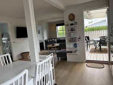 Dejligt sommerhus med 3 soveværelser, fin have med flere terasser og 1 overdækket terrasse. Fin have med gyngestativ, lidt udendørslegetøj, kul-grill. Der står 2 cykler som man må benytte.