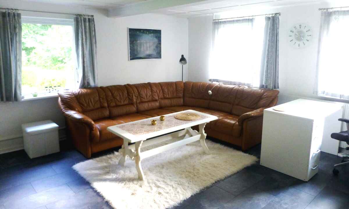 Det drejer sig om en firelænget gård beliggende i midten af Bornholm cirka 10-12 km fra Rønne. Hoved huset har en stor gårdsplads omgivet af fire længer. Den har en stor terrasse med borde og stole, samt grill, der indbyder til afslappende aftener. Haven omkring gården er anlagt som park, med 100 år gamle blodbøge som et majestætisk indslag, samt en mindre sø for enden. Haven har god plads til alle former for sport og rekreative spil. På den store grund er der i alle retninger anlagt adskillige terrasser med borde og stole til afslapning over morgenkaffe, eftermiddags drink, eller grill aftener. Huset ligger eleveret med en fantastisk udsigt til en horisont af solopgange, nedgange, samt et gyldent hav af marker. Stedet ånder absolut fred og ro. Indenfor finder man et køkken med alle fornødenheder, køleskab/fryser, komfur, ovn, microware, kaffemaskine, toaster, samt alle former for gryder, pander, bageforme, og bestik. Der er to værelse med dobbeltsenge, samt et værelse med enkeltseng. Huset har WIFI, og fjernsynet er udstyret med comcast. For kølige aftener er der luft til luft varme pumper i alle større værelser.