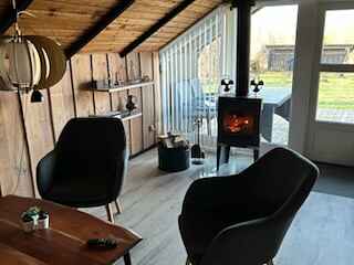 Indenfor er pladsen udnyttet godt med 2 soveværelser i hovedhuset. Det ene har dobbeltseng, og det andet har enkeltseng med overkøje. Derudover får I et anneks som tredje soveværelse med køjesenge – ideelt til børn eller dem, der gerne vil have lidt ekstra ro.