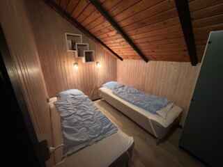 Indenfor er pladsen udnyttet godt med 2 soveværelser i hovedhuset. Det ene har dobbeltseng, og det andet har enkeltseng med overkøje. Derudover får I et anneks som tredje soveværelse med køjesenge – ideelt til børn eller dem, der gerne vil have lidt ekstra ro.