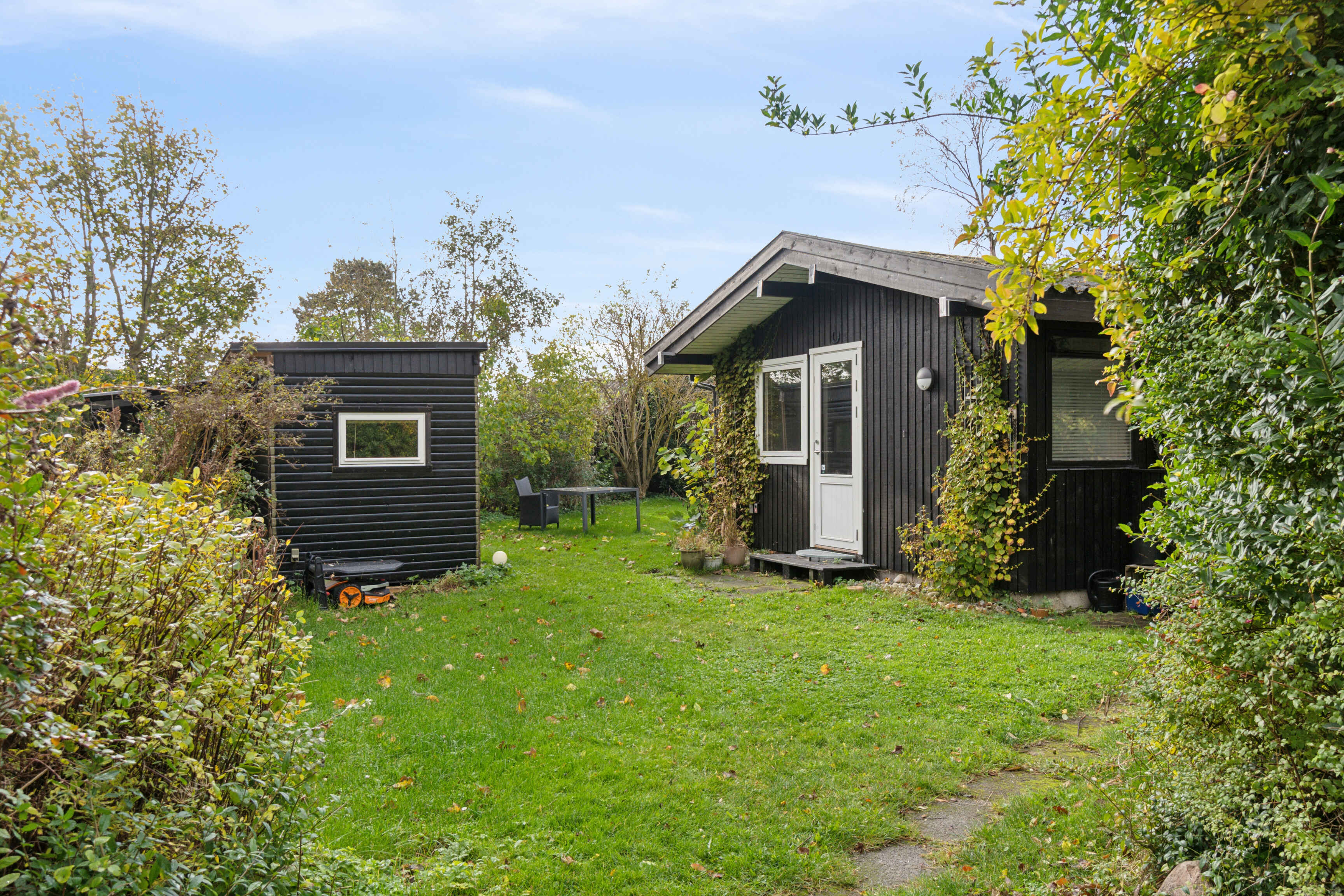 Haven er stor og indbyder til leg og afslapning. Her er plads til boldspil, solbadning eller en stille stund med kaffe på terrassen, mens børnene leger i græsset.