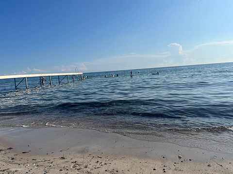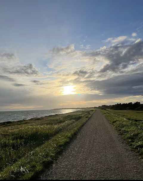 Her er gode muligheder for både gå- og cykelture samt badning fra badebroen lige ved adgangen til stranden.