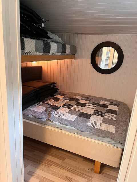 3. Værelse: 140 cm dobbeltseng, 90 cm enkeltseng, 90 cm Køjeseng