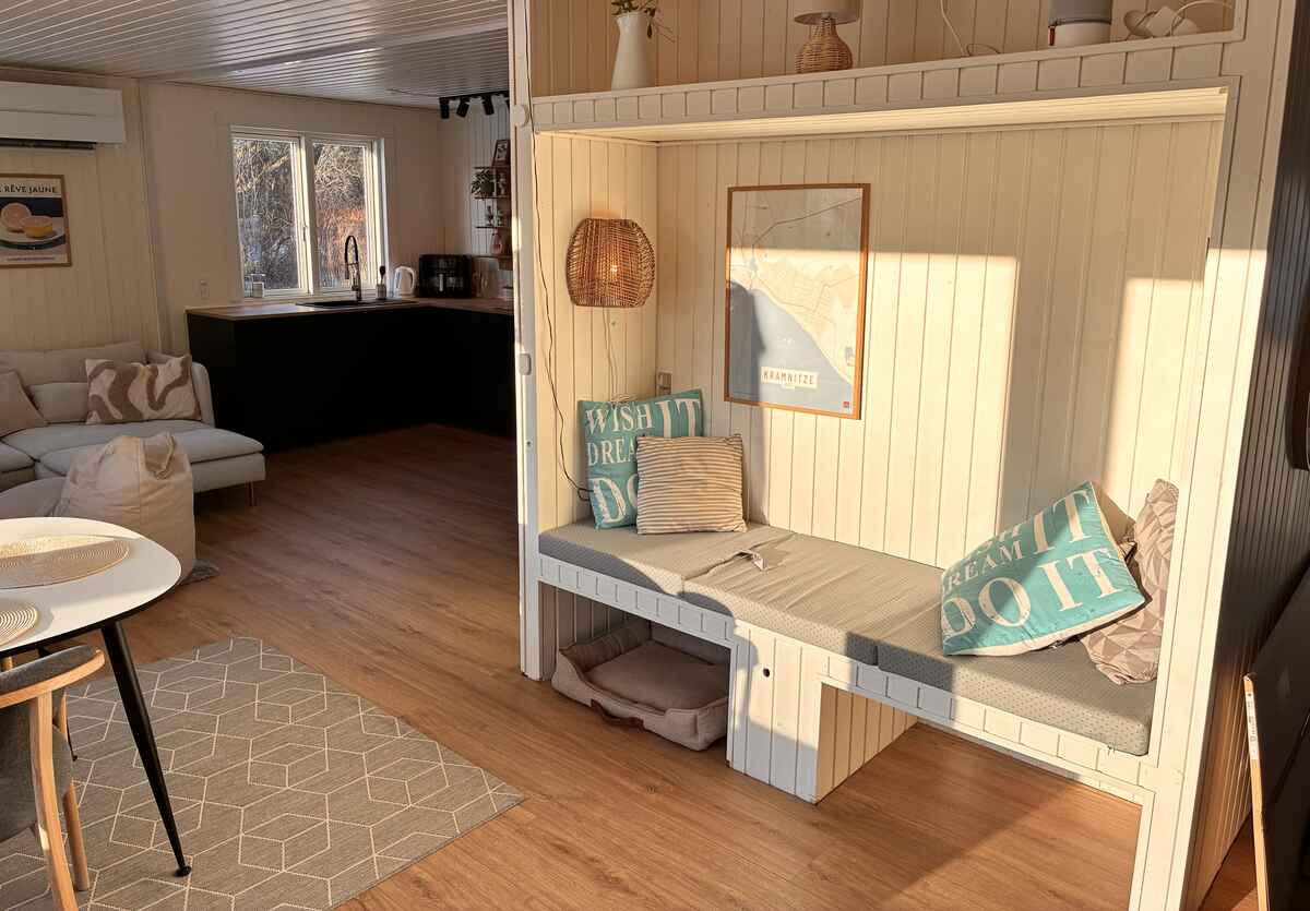 I stuen er der en hyggelig alkove til læsning og afslapning samt en dejlig brændeovn, som skaber ægte sommerhusstemning året rundt. Sommerhuset byder desuden på lynhurtig fibernet, Chromecast, Apple TV, PlayStation 4 og brætspil til hyggelige stunder indendørs.