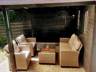Udover den store terrasse, er der yderligere en mindre overdækket terrasse samt en helt ugeneret gårhave.