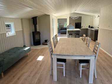 Boligen har 4 store soveværelser med dobbeltsenge. Derudover kan en daybed benyttes til én ekstra person. Gulvvarme i alle rum sikrer komfort året rundt, og brændeovnen kan tændes, når der ønskes ekstra hygge.