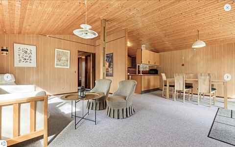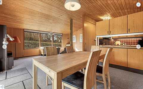 Kom og bo i en tidslomme fra 70´erne. Sommerhuset står meget velbevaret, men har samtidig opvaskemaskine og andre bekvemmeligheder. 600 meter fra skoven, 1 kilometer til Brugsen og 1,7 kilometer fra stranden (der hører fire cykler til sommerhuset). Huset er egnet til max tre voksne og to børn grundet sengene. Værelserne er meget små, men stuen er rummelig. Der er gulvtæpper, så vi kan desværre ikke have hunde, der fælder, boende.