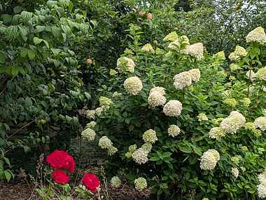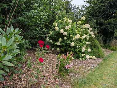 Hele grunden er indhegnet og fuldstændig privat med masser af dejlige læ-kroge.