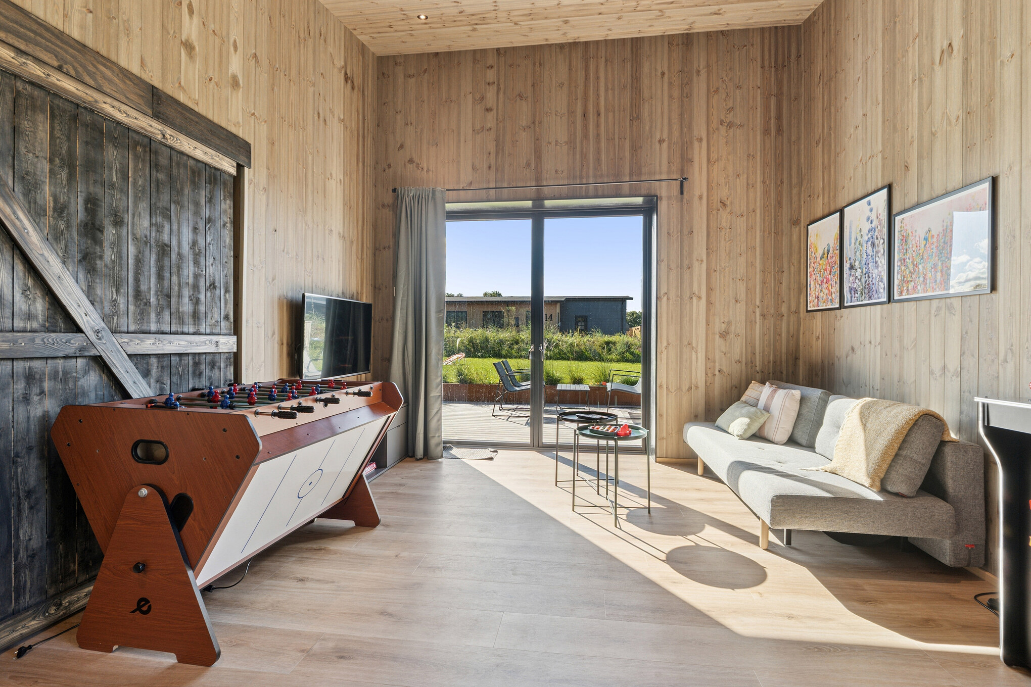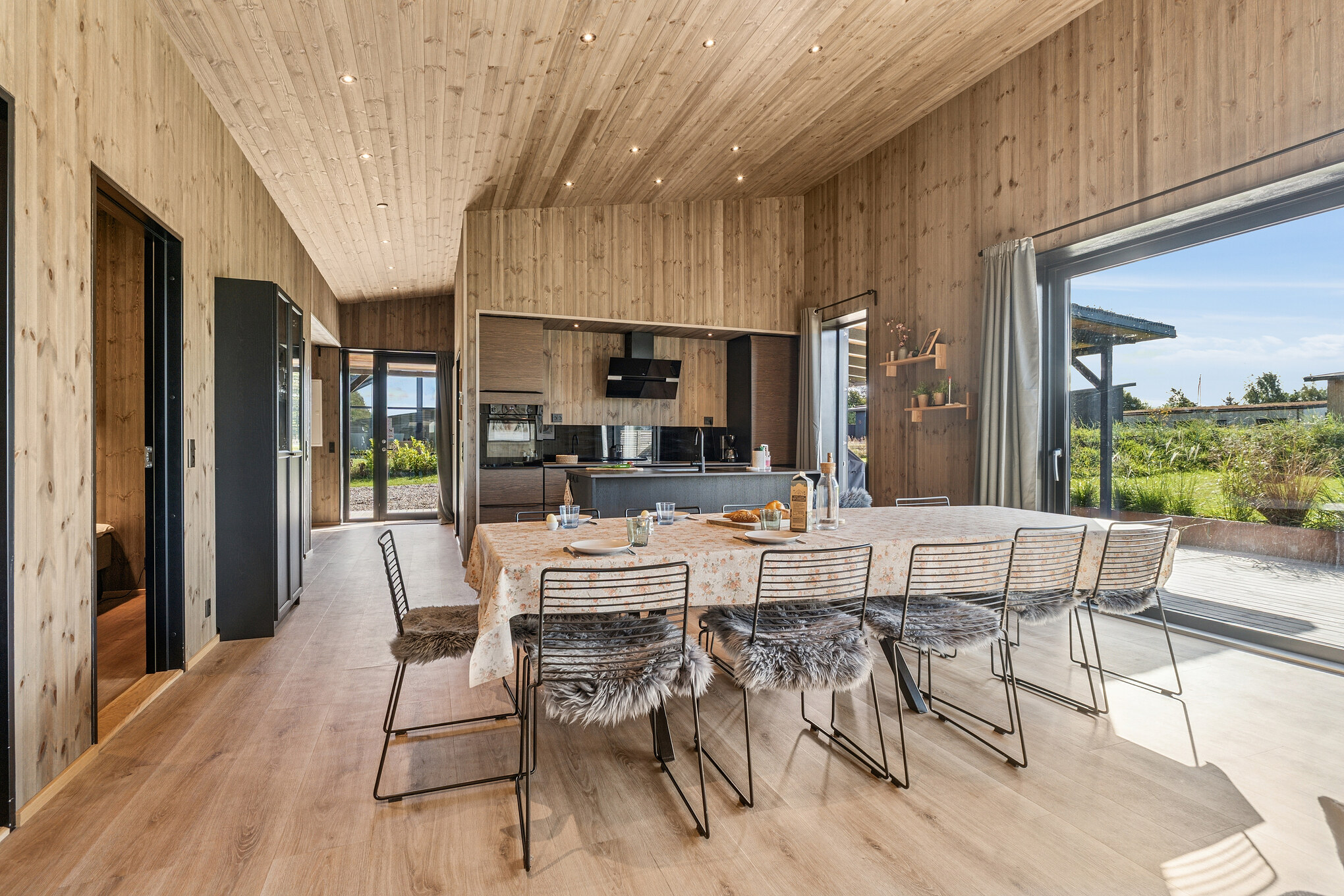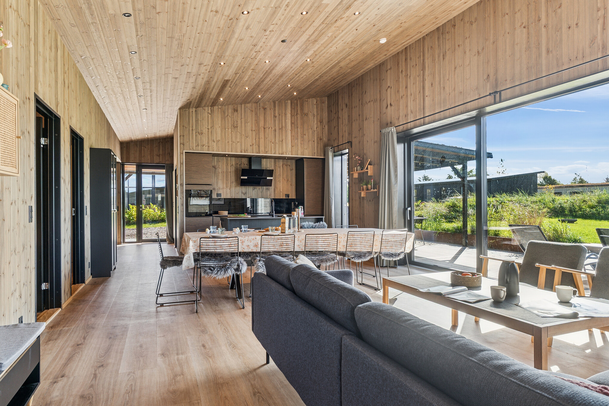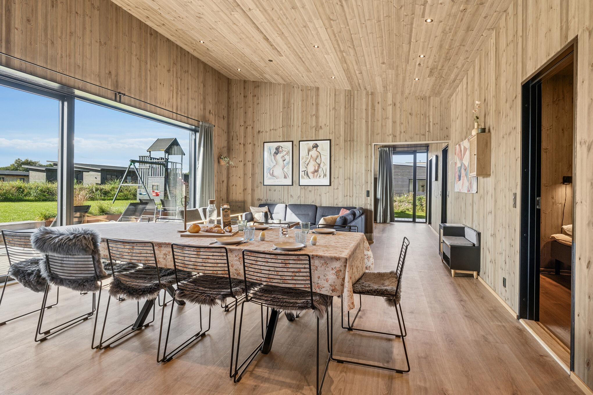 Velkommen til et lyst og moderne sommerhus i Øster Hurup – perfekt placeret tæt på strand, byliv og det kendte Vaffelhuset. Huset har plads til 12 personer fordelt på fem soveværelser, hvoraf det ene ligger i et charmerende anneks med store vinduer og skovudsigt. Indretningen er hyggelig og indbydende med opholdsrum, køkken og stue som naturligt samlingspunkt. Her kan I samles om madlavning, spil og filmaftener, mens terrassedørene åbner op mod haven. Aktivitetsrummet byder på både airhockey og arkadespil, og udenfor finder I en dejlig have med legetårn til børnene. På den store træterrasse kan I tænde op i gasgrillen og nyde de lange sommeraftener. Som prikken over i’et kan I forkæle jer selv i wellnessområdet med spa og udebruser under åben himmel. Øster Hurup byder på en børnevenlig strand, hyggelige butikker og oplevelser i naturen – alt til en mindeværdig ferie.