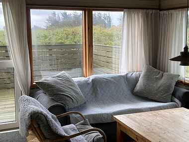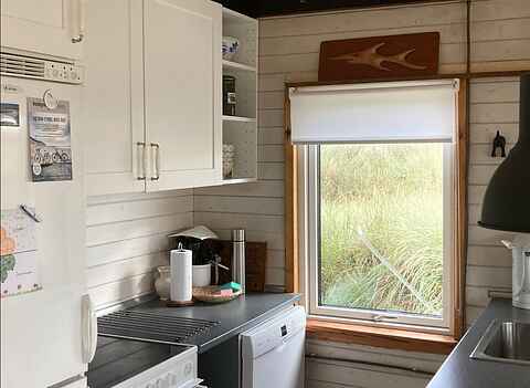 Huset har en hyggelig stue med brændeovn i åben forbindelse med køkkenet og med lys fra flere sider. Her er en dejlig spiseplads med en skøn udsigt over området. Gratis internet, parabol med tyske TV-kanaler og Chromecast TV.