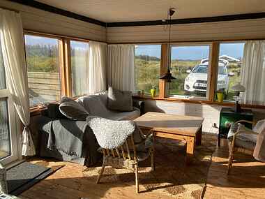 Huset ligger skønt placeret i et klitområde ved Løkken, og hvor end man ser ud ad vinduerne i huset, mødes øjet af den vilde klitbevoksning.