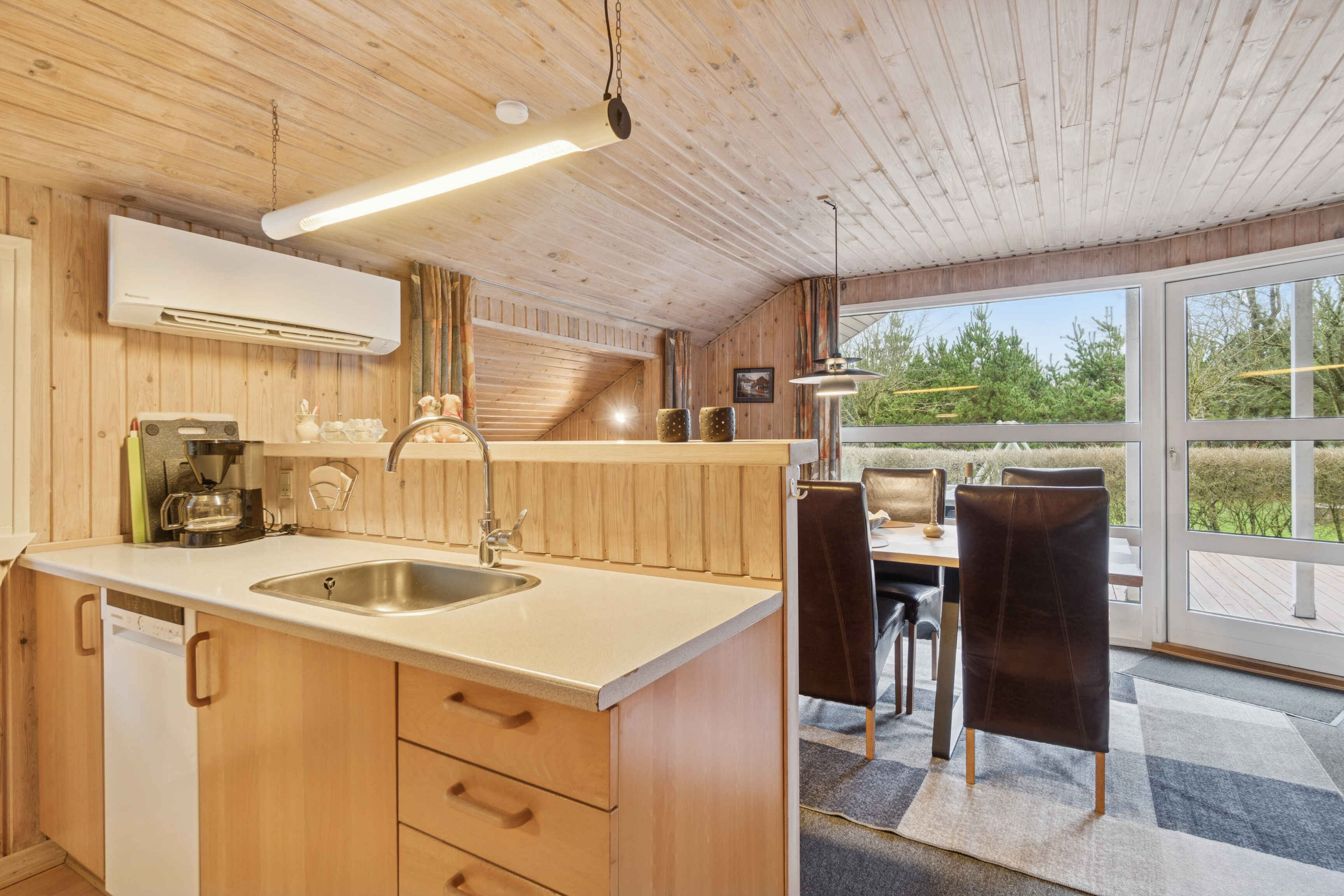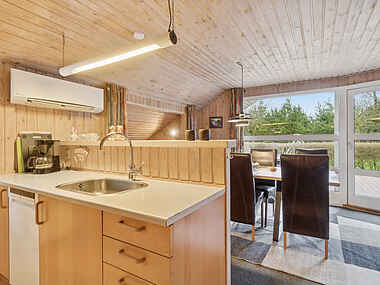 Her venter et velindrettet sommerhus på 84 m² med plads til seks personer fordelt på tre soveværelser. Planløsningen er åben og funktionel med køkken og stue i naturlig forbindelse, så samvær og ferieliv kan glide let sammen.