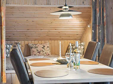 Efter en dag ude kan I tænde op i brændeovnen eller lade varmepumpen sikre et behageligt indeklima. Badeværelset byder på både gulvvarme, hjørnespa og sauna – oplagt til afslapning året rundt.