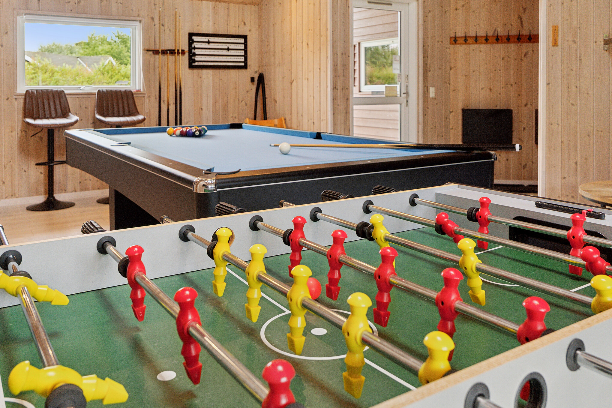 Dette rummelige VillaVilla-poolhus ligger nær den smukke strand i Marielyst, tæt på restauranter og indkøbsmuligheder. Huset er indrettet med et stort køkken-alrum, en poolafdeling med vandrutsjebane, spabad og sauna, samt et aktivitetsrum med bordtennis, billard og dart. Køkkenet er åbent og velindrettet, hvilket gør det nemt for flere at deltage i madlavningen. Måltiderne kan nydes ved det lange spisebord. Huset har en stor terrasse med havemøbler og grill, samt en stor grund med sandkasse, legetårn og græsplæne. Sovepladserne er fordelt på to soveafdelinger med tre dobbeltværelser hver, samt to hemse.