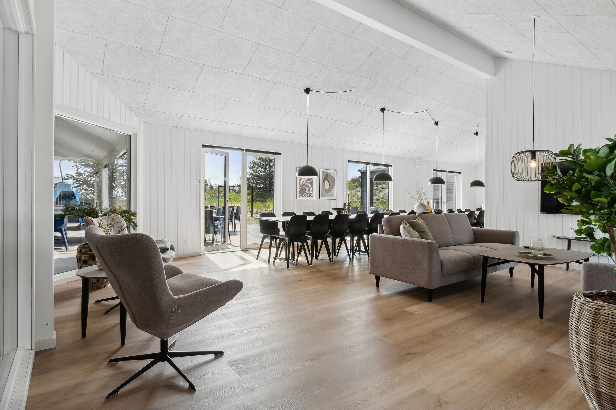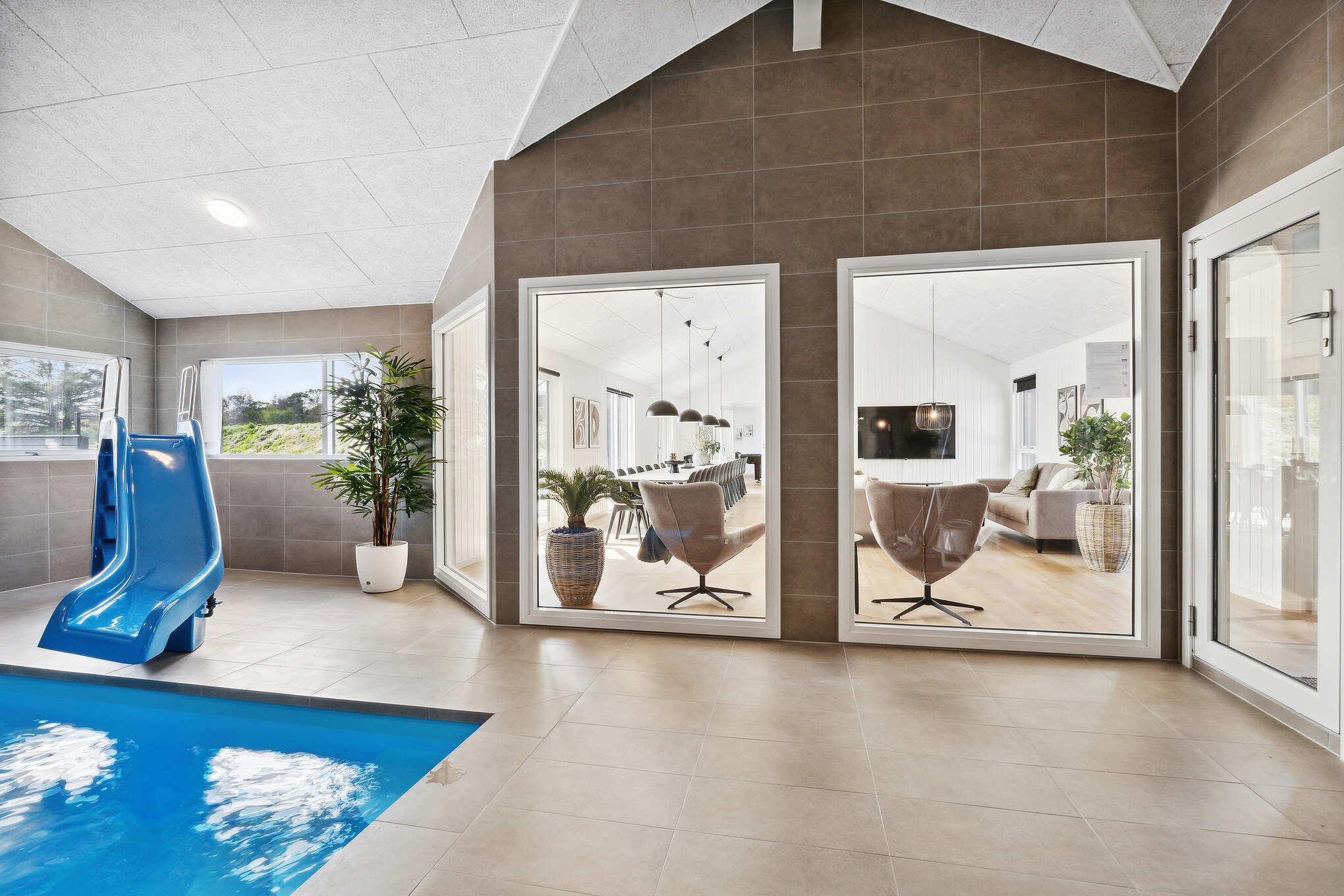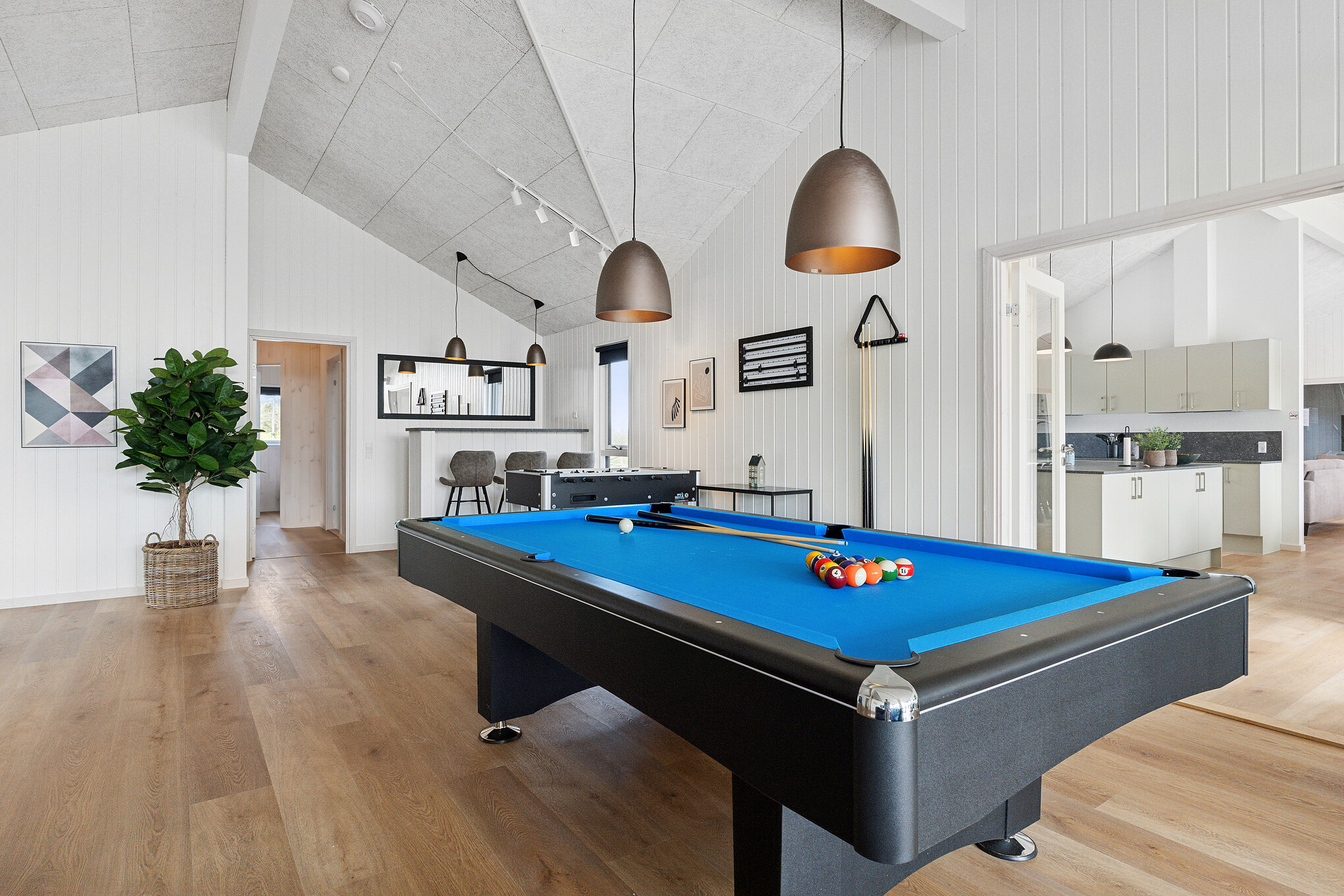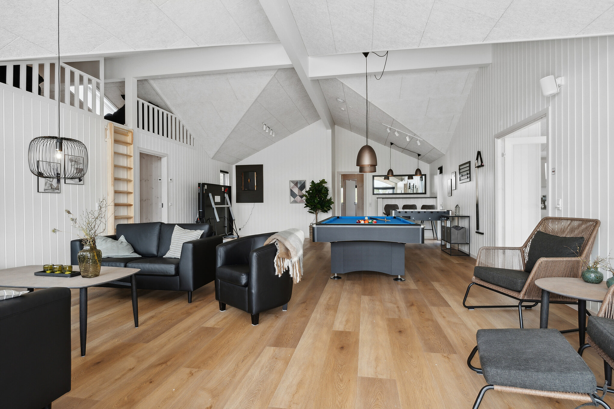 Kun få minutters gang fra stranden ligger dette moderne poolhus med plads til hele 30 personer. Huset har 12 soveværelser, hems og 5 badeværelser, perfekt til store familier eller vennegrupper. Poolområdet byder på rutsjebane, spa, sauna og udebruser – ideelt til afslapning og sjov for alle. På den store træterrasse kan I nyde wellness, grill og lange sommeraftener, mens børnene leger på gyngerne. Indendørs venter et aktivitetsrum med billard, bordtennis, bordfodbold, dart og bar. Det store opholdsrum har XL-køkken med dobbelt udstyr og langbord til fælles måltider. Med multibane, legeplads og kort afstand til strand og byliv i Marielyst, får I alt til en ferie med både samvær, komfort og oplevelser.