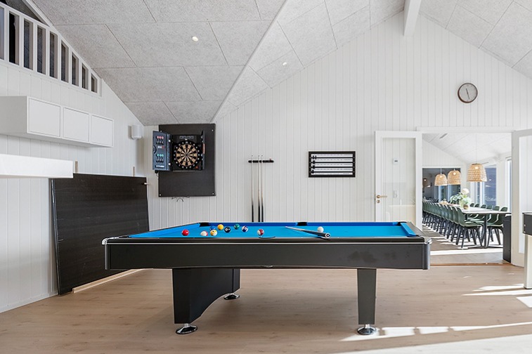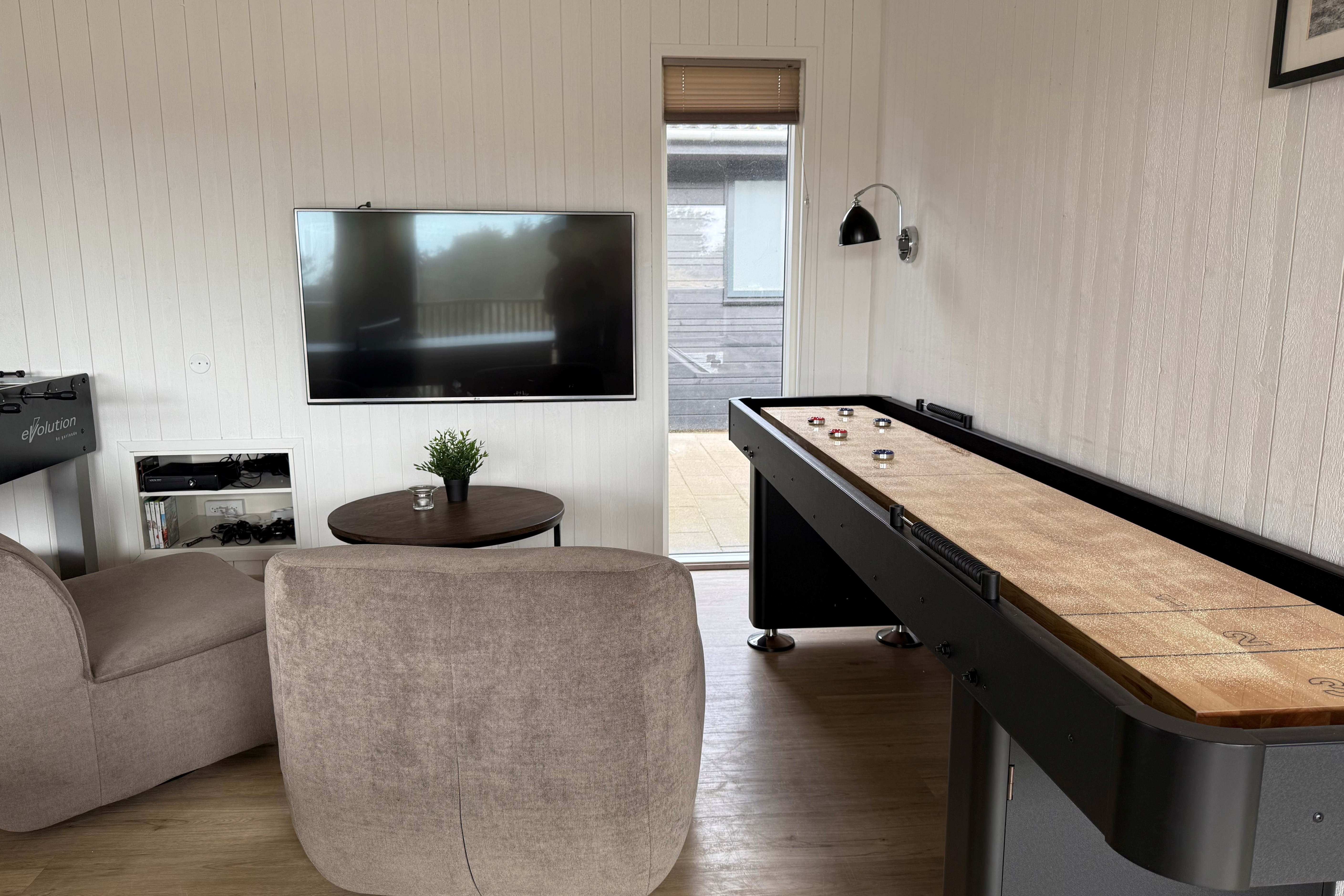 Dette store poolsommerhus i Marielyst er det oplagte valg til ferie, firmaarrangementer eller familiesammenkomster med op til 26 gæster. Huset er indrettet som et indbydende Sammenhus™ med stort opholdsrum, XL-køkken og langbord, hvor alle kan samles til fælles måltider og hyggelige stunder. Projektor og lærred gør det ideelt til filmaftener, sport og præsentationer. Aktivitetsrummet byder på bl.a. billard, bordtennis, shuffleboard, dart og PlayStation, mens poolafdelingen med vandrutsjebane sikrer sjov for både børn og voksne. Udenfor venter en stor terrasse med grill, terrassevarmere og et lækkert wellnessområde med udespa, sauna og udebruser. Der er også elbillader og adgang til stor fælles legeplads. Beliggenheden i Marielyst giver desuden nem adgang til strand, restauranter og ferieoplevelser.