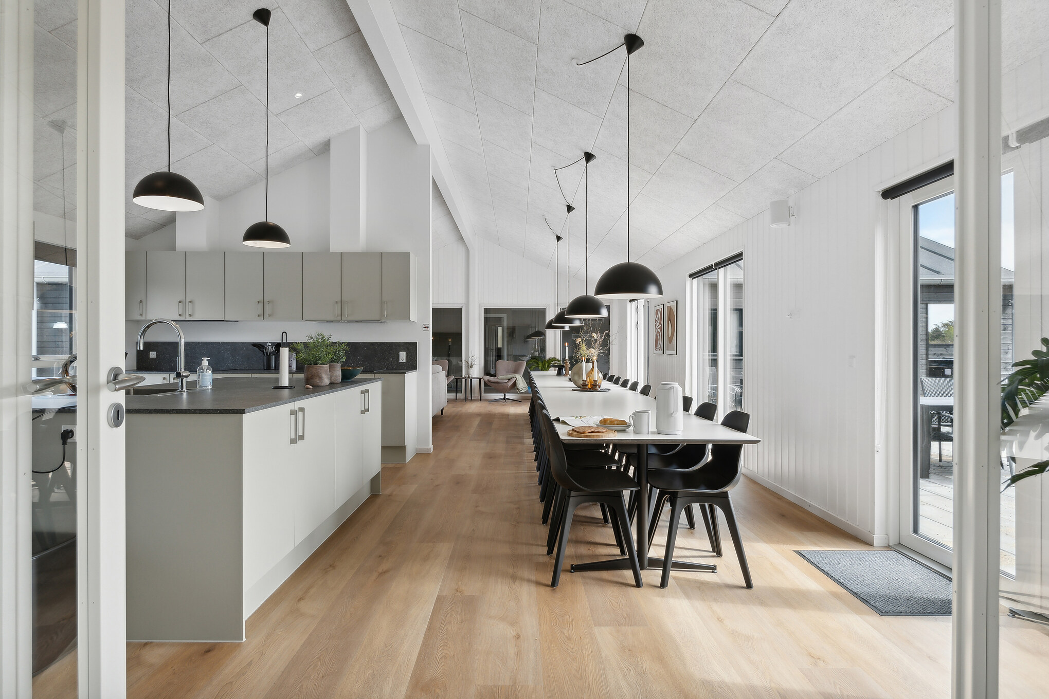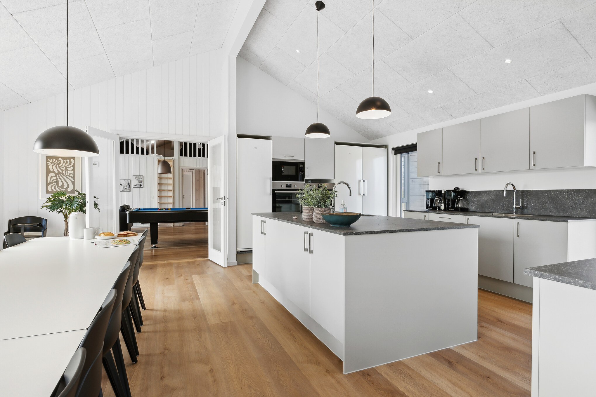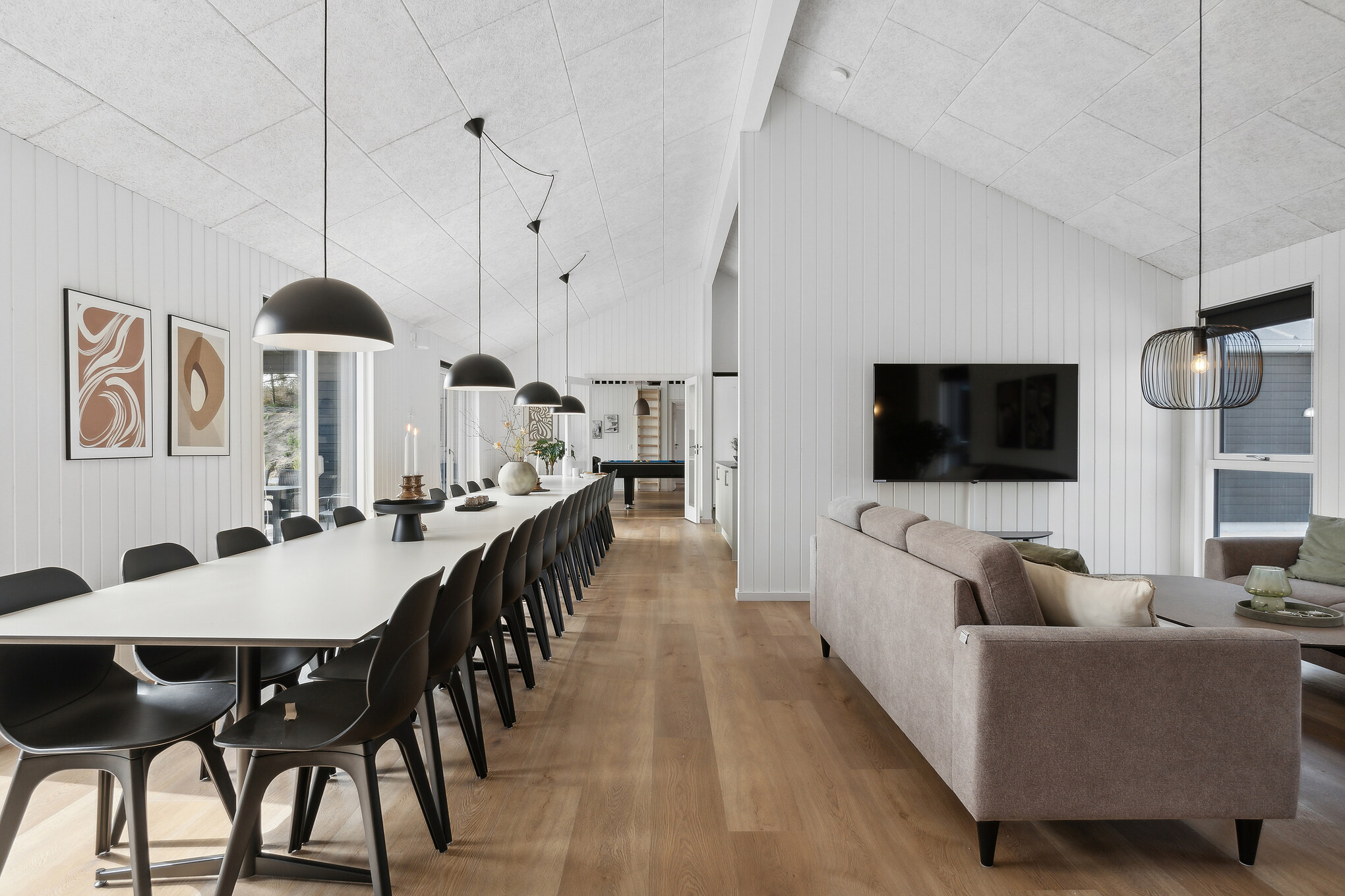 Dette store feriehus i Marielyst er ideelt til ophold for op til 30 personer og danner perfekte rammer om ferie med familie, venner eller flere generationer. Med 12 værelser, 5 badeværelser og ekstra sovepladser på hems er der god plads og høj komfort til alle. Huset byder på flere samlingspunkter, herunder et aktivitetsrum med billard, bordtennis, dart og bordfodbold samt barområde. Det rummelige køkken-alrum med XL-køkken, vinkøleskab og langt spisebord inviterer til fælles madlavning og hyggelige stunder. Poolområdet med indendørs pool og rutsjebane er oplagt til både leg og afslapning. Udendørs venter ren wellness med spa, sauna og koldtvandskar samt terrasse med lounge og spiseplads. Med kort afstand til strand, multibane og legeplads er huset et oplagt valg til en oplevelsesrig ferie i Marielyst.