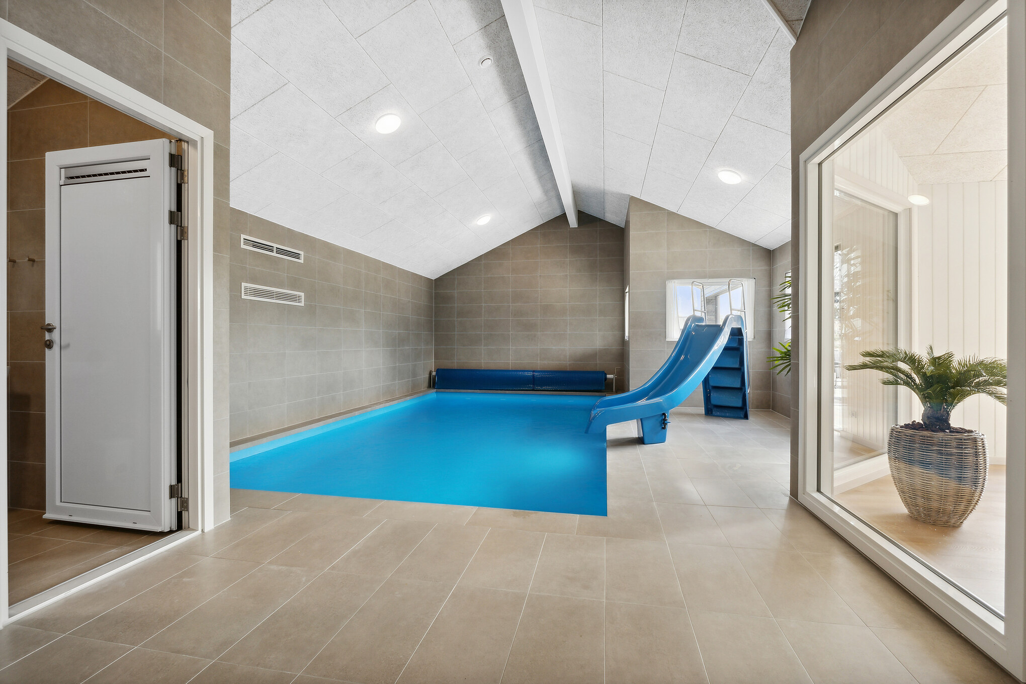 Dette store poolhus ved Marielyst Strand rummer alt, hvad der skal til for en ferie med familie, venner eller kollegaer. Kun 800 meter fra stranden og omgivet af en hyggelig, grøn grund finder I et hus med 12 soveværelser, 6 hemsepladser og 5 badeværelser – perfekt til både ferie og arrangementer. Det centrale opholdsrum byder på XL-køkken, langbord og sofaområde samt projektor, lærred og whiteboard, der gør huset oplagt til både samvær og møder. Poolafdelingen giver plads til vandleg og svømmeture hele året, mens det udendørs wellnessområde med spa, koldtvandskar, sauna og udebruser sørger for ekstra forkælelse. I aktivitetsrummet venter billard, bordtennis, dart, bordfodbold og en bar med vinkøleskab – ideelt til hyggelige aftener. Den store terrasse inviterer til grill og fælles middage, mens børnene leger i haven. Med Marielysts brede sandstrand, livlige byliv og mange aktiviteter i nærheden er rammen sat for en ferie fuld af hygge, afslapning og oplevelser.