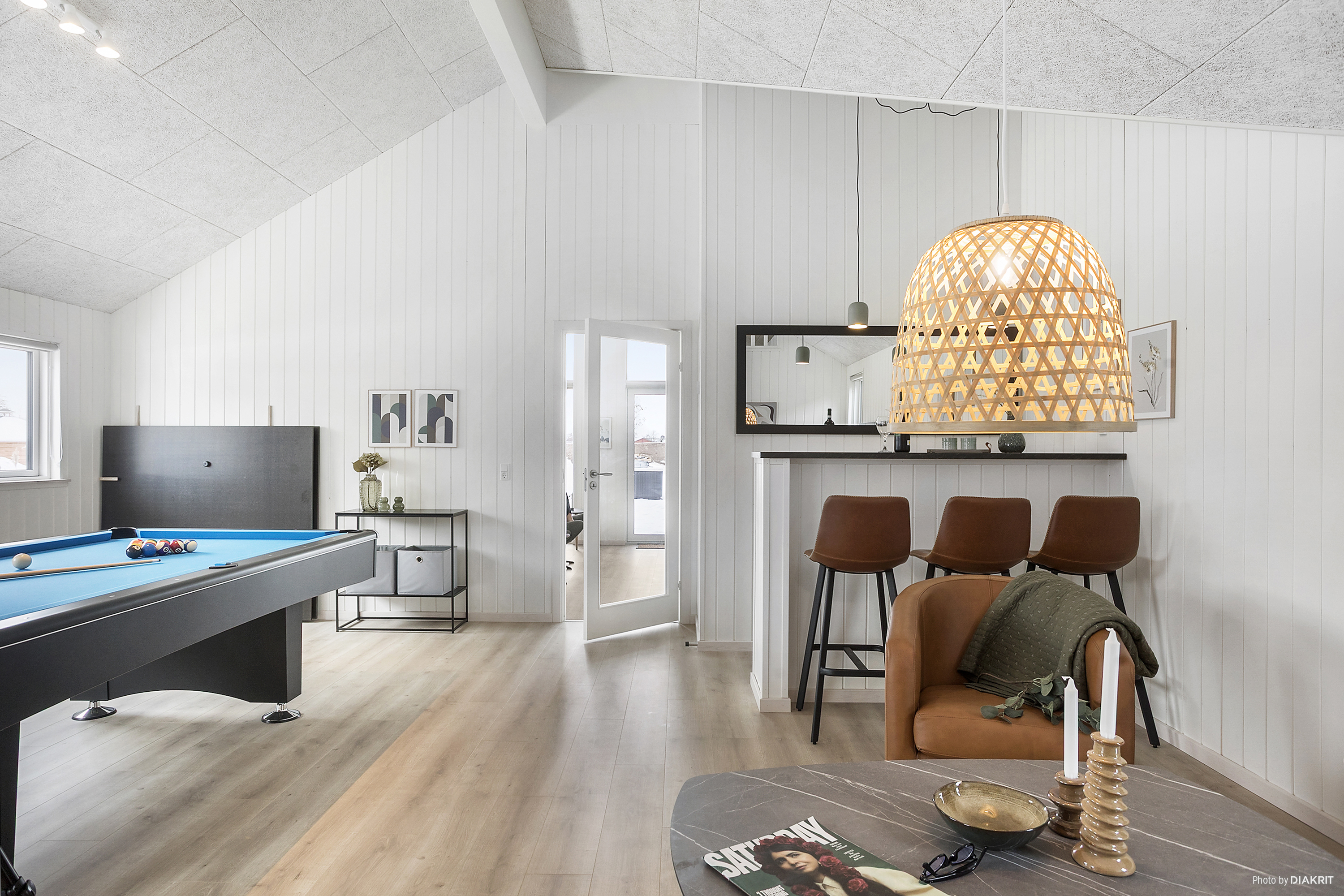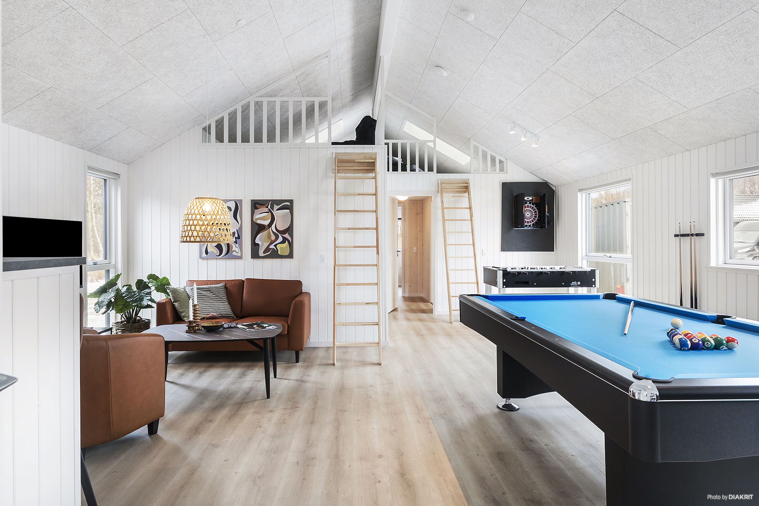 I hjertet af Marielyst ligger dette rummelige poolhus til 18 personer – ideelt til ferie med familie og venner året rundt. Huset byder på pool med rutsjebane, wellness med spa og sauna samt et stort aktivitetsrum med billard, bordtennis, bordfodbold og dart. Det lyse opholdsrum med XL-køkken, langbord, sofaområde og brændeovn danner ramme om hyggelige stunder. Udenfor kan I nyde terrassen med grill og havemøbler, mens børnene leger på gyngerne. Med 7 soveværelser, hems og 3 badeværelser er der plads til alle. Beliggenheden tæt på strand, byliv og fælles aktivitetsområder gør huset perfekt til både afslapning og sjove oplevelser i Marielyst. Bemærk venligst at dette VillaVilla-hus ikke udlejes til ungdomsgrupper.