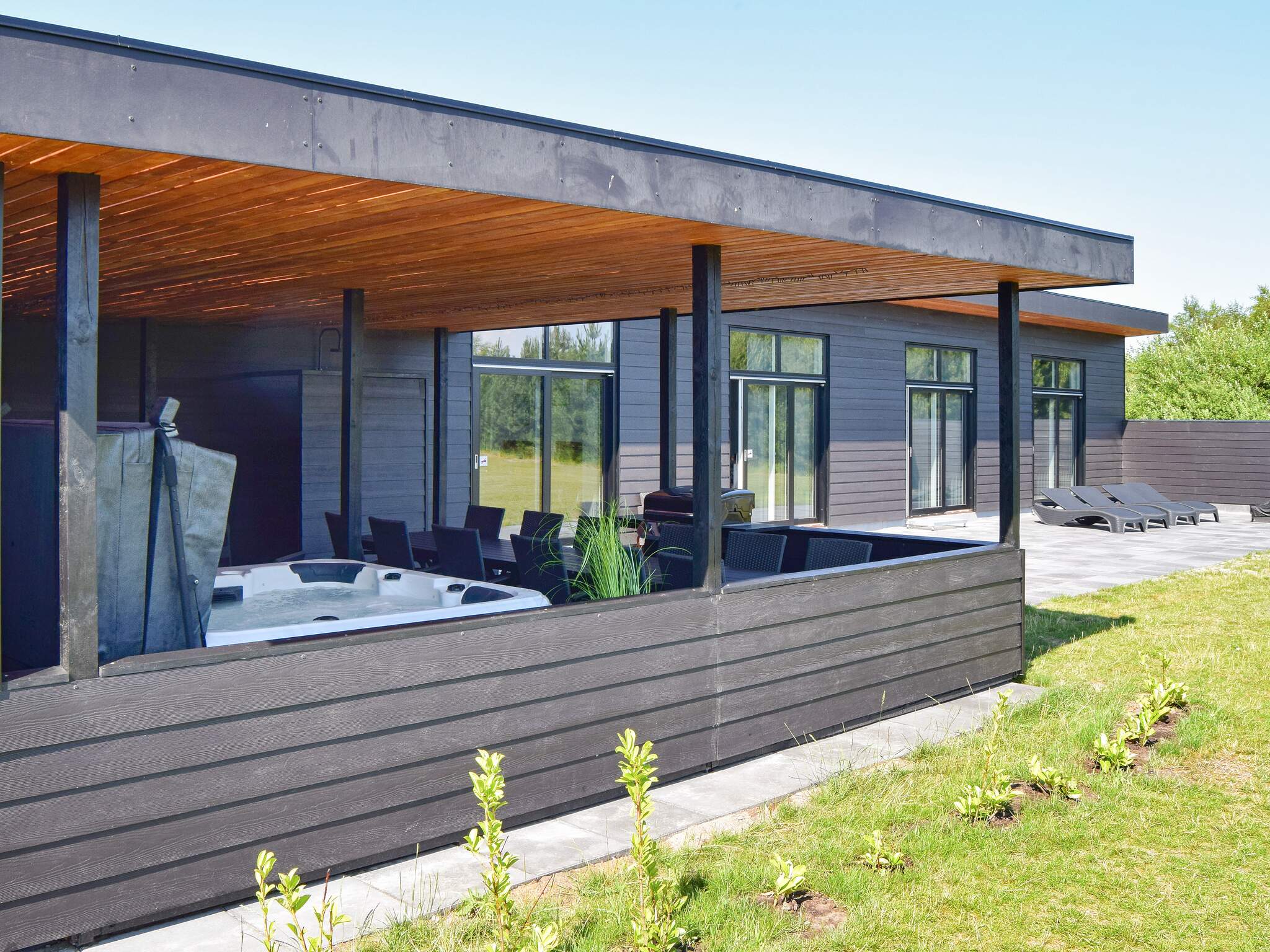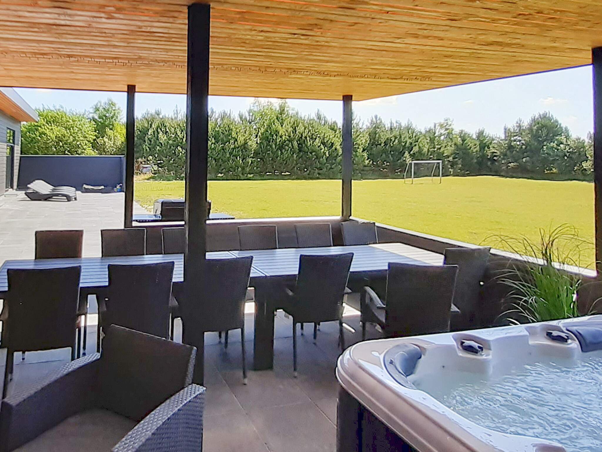 Dette moderne sommerhus i Marielyst er ideelt til store familier eller flere generationer, der ønsker en ferie med komfort og aktiviteter. Huset rummer op til 14 personer fordelt på seks soveværelser og tre badeværelser. Udenfor er der rig mulighed for leg og afslapning med fodboldmål, trampolin, gynger og udendørs spa til 7 personer samt hyggeligt bålsted. Indenfor byder huset på et stort opholdsrum med fuldt udstyret køkken, samt et aktivitetsrum med bordtennis, billard og spillekonsol. Der er både indendørs spa og sauna, og stranden ligger blot 1200 meter væk. Desuden er der gratis adgang til to svømmecentre. Alt i alt perfekte rammer for en mindeværdig ferie.\r\n Bemærk venligst at dette VillaVilla-hus ikke udlejes til ungdomsgrupper.