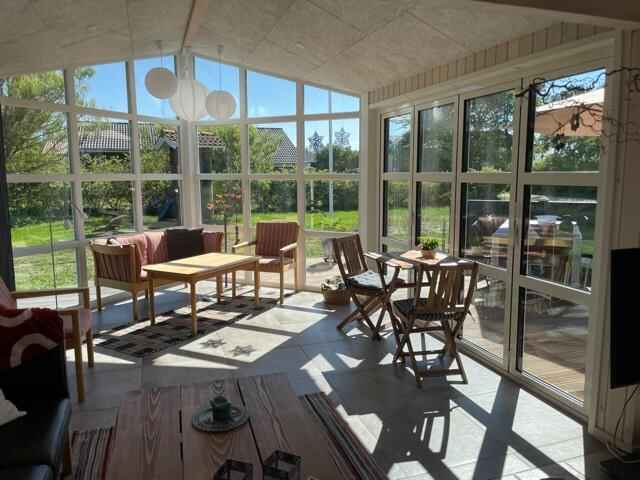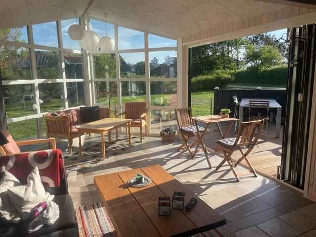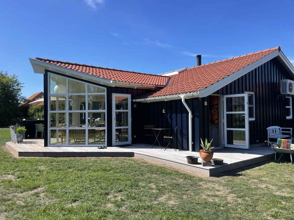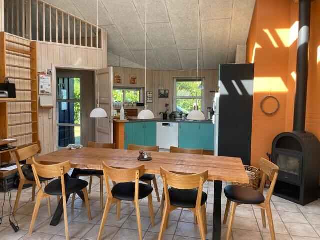 Nyere, moderne sommerhus med god indretning – renoveret/udvidet 2017 – 2021, tæt på vand og med alt, hvad der skal til for en super dejlig ferie. Her er huset, der er perfekt for 2 familier, med 2 separate afdelinger med eget bad og toilet – det ene med et 2-personers spabad. Med ovenlys i køkken/alrum er der et dejligt lys i sommerhalvåret, og i vinterhalvåret og på de lidt køligere dage kan brændeovnen sørge for varme og hygge.
