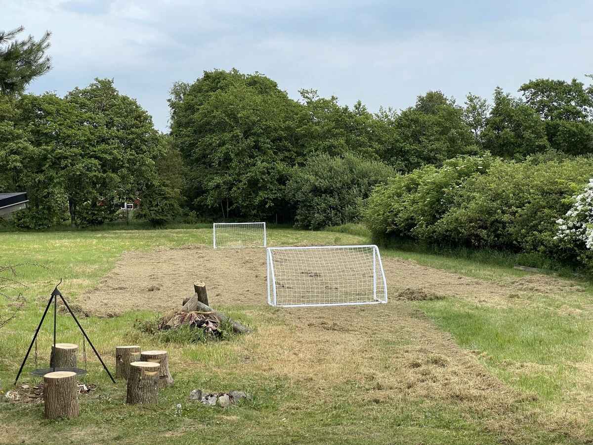 Når familien skal samles udendørs og slappe af, er der masser af muligheder på træterrasserne eller på de specielt indrettede bålsteder ved shelteren, der med garanti vil vække glæde hos såvel unge som ældre. Til børnene er der, fodboldbane og masser af udenomsplads på den store grund på 3.000 kvm, hvor der er masser muligheder for udendørs aktiviteter i form af boldspil og andre aktiviteter.