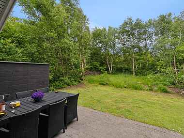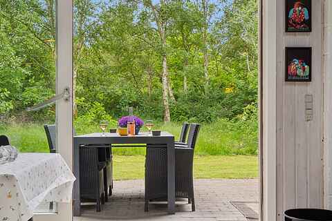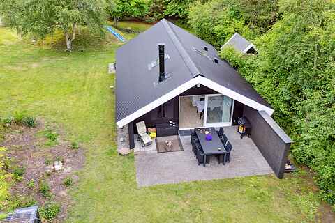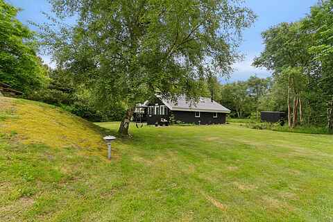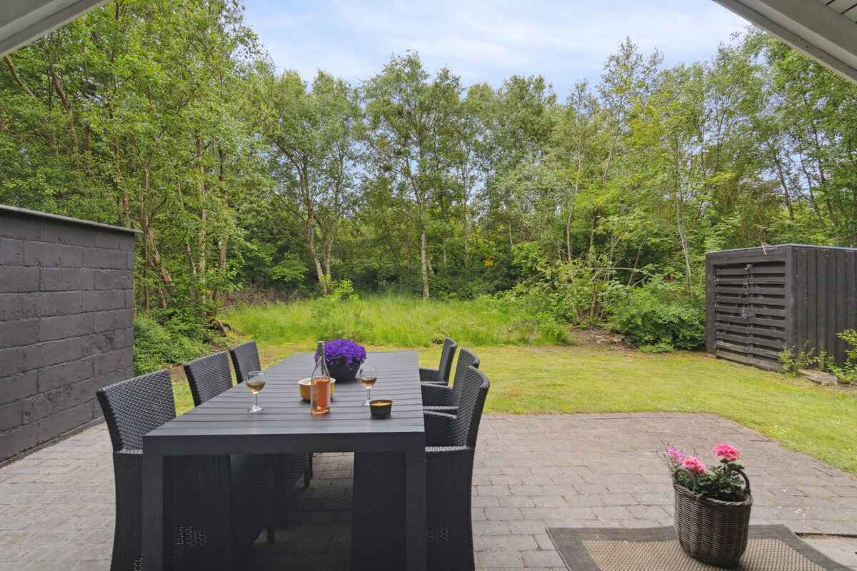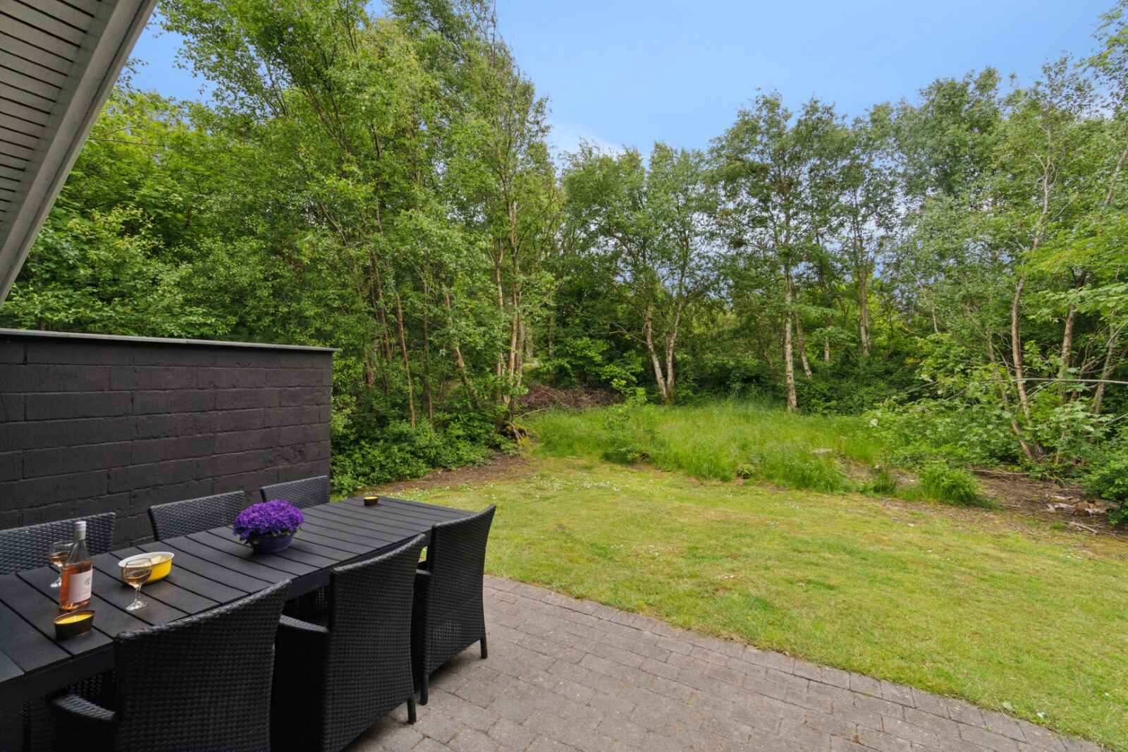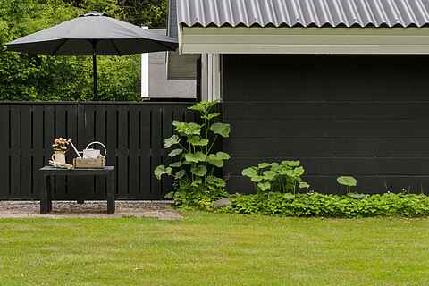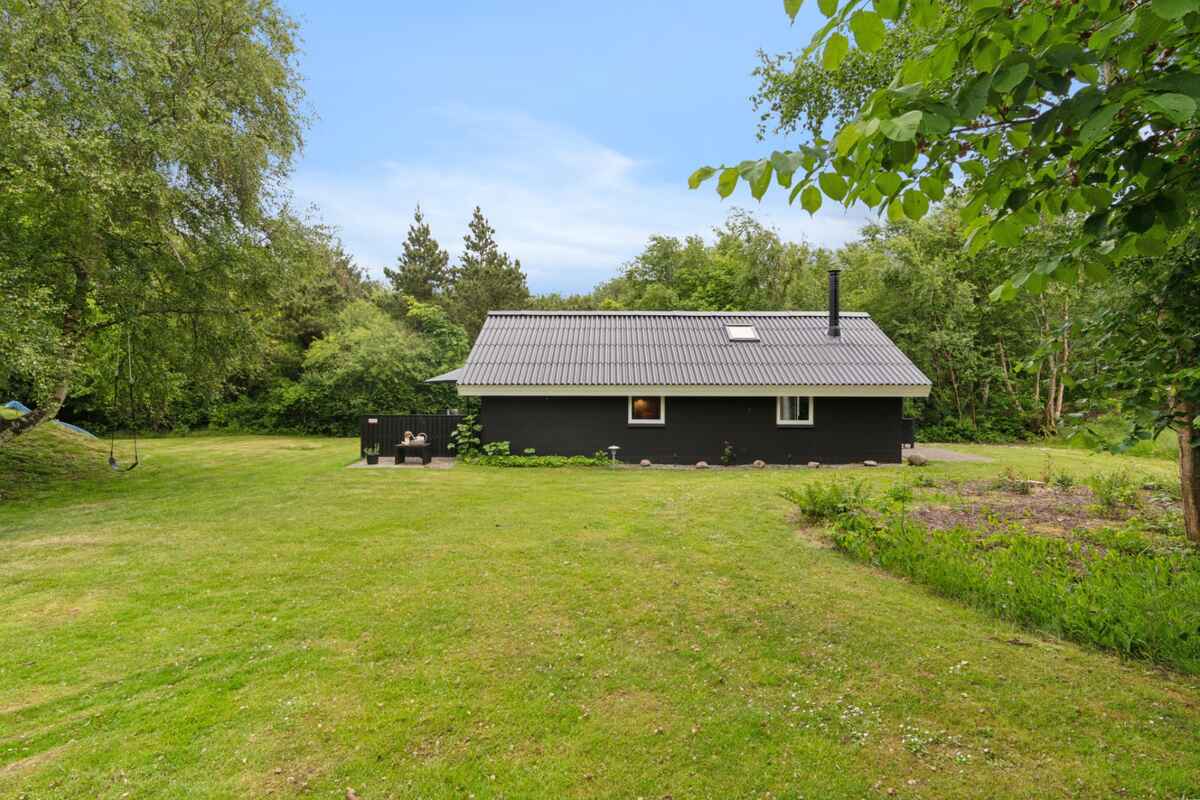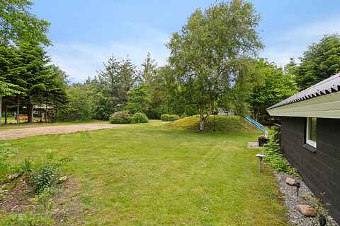 Haven er som skabt til ferieliv. Her kan børnene more sig på gynge og rutsjebane, mens de voksne nyder solen på terrassen. Grillen gør det let at samle familien til aftensmad under åben himmel. Haven er rummelig, ugenert og indbyder til både leg, afslapning og stilhed.